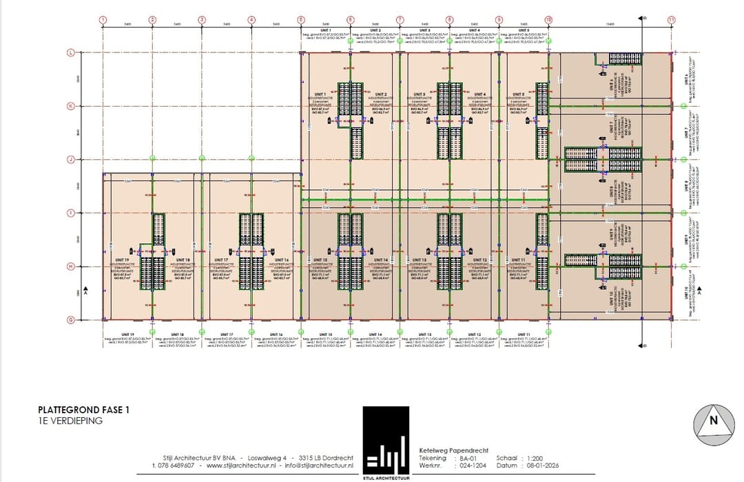 NB: Oppervlaktes zijn indicatief (ca. BVO), inclusief verdiepingen en eventuele dakterrassen. Units kunnen worden gekoppeld.