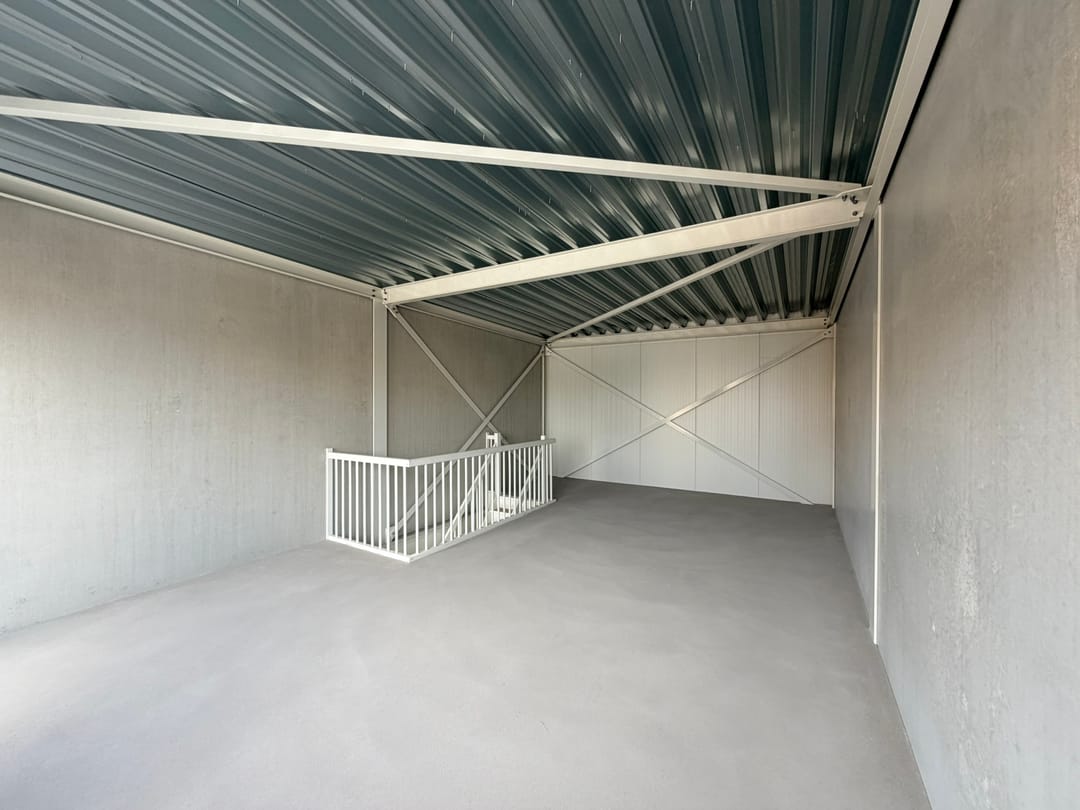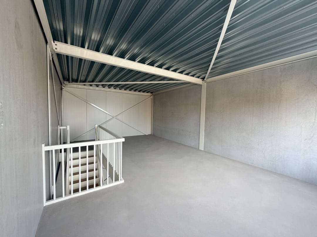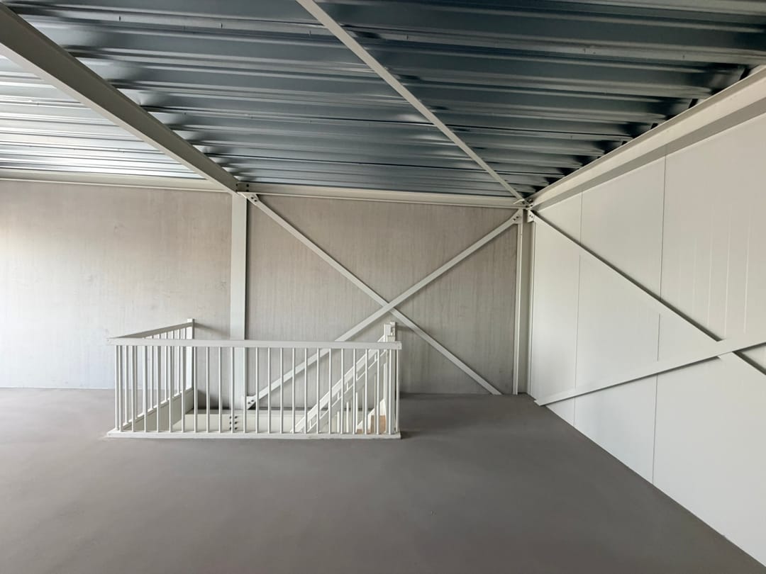 De unit wordt casco geleverd en is daarmee een blanco canvas. Geen standaard afbouw, maar juist de vrijheid om de indeling, installaties en uitstraling volledig af te stemmen op het eigen gebruik. Geschikt voor uiteenlopende bedrijfsactiviteiten binnen de geldende bestemming.