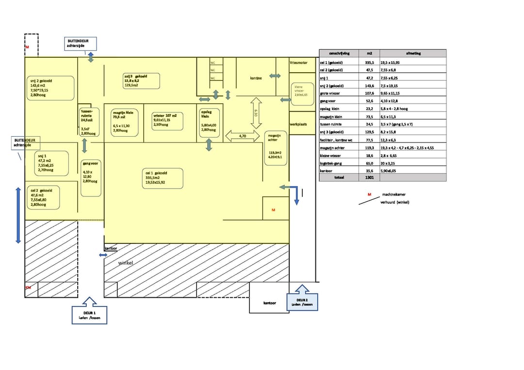 Ca. 1.301 m² bedrijfsruimte (zie tekeningen op pagina 4).