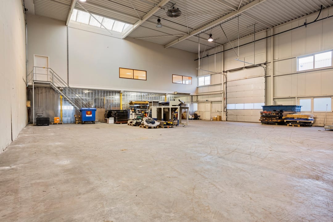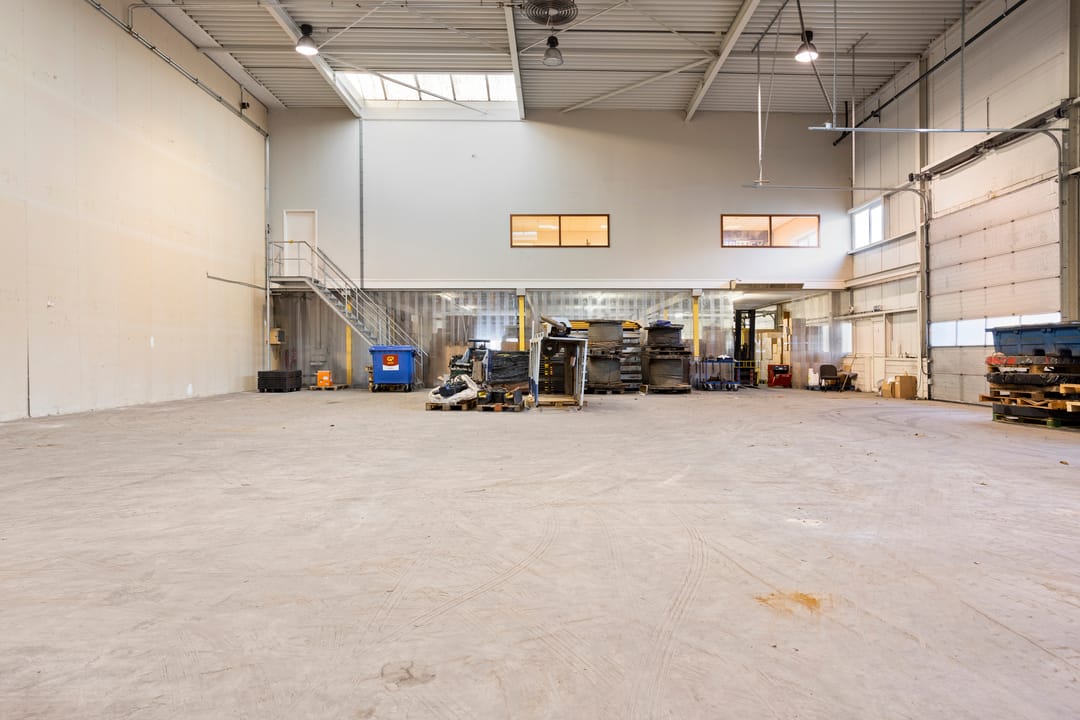 De bedrijfsruimte beschikt over overheaddeuren, wat zorgt voor een efficiënte laad- en losmogelijkheid. De vrije hoogte bedraagt circa 8,65 meter, waardoor de ruimte optimaal benut kan worden. Daarnaast zijn er lichtstraten aanwezig die zorgen voor voldoende licht. Op de begane grond is een toilet aanwezig.