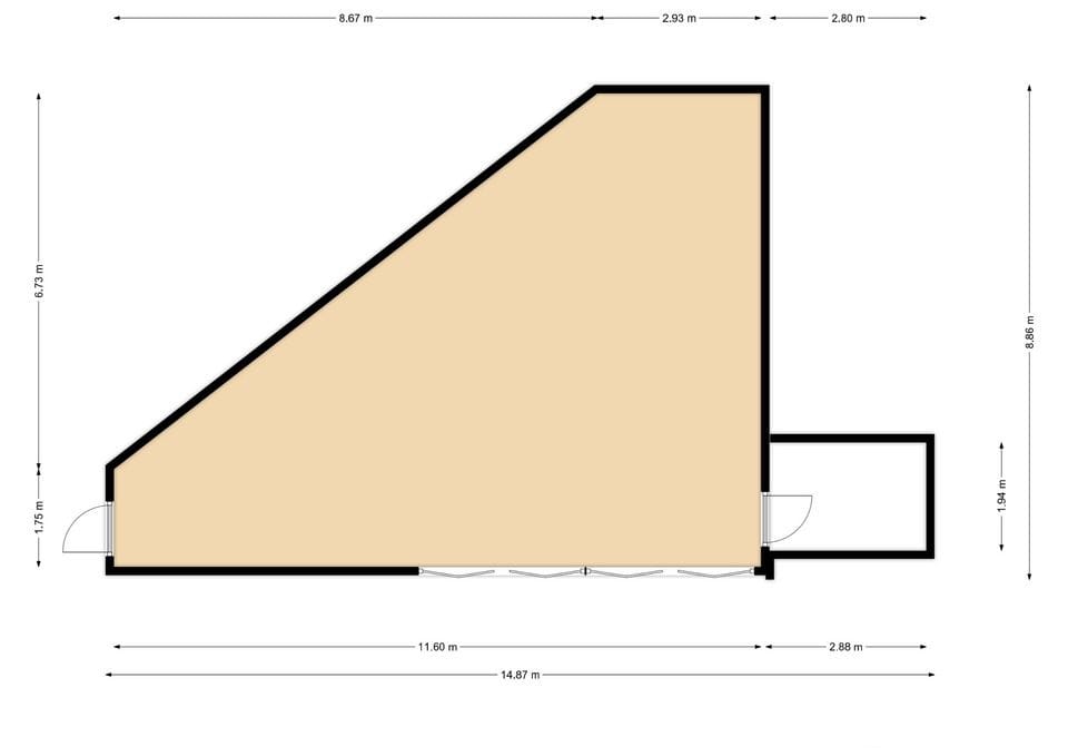 Afmetingen garage: 8.86 m x 11.60 m(l x b ).