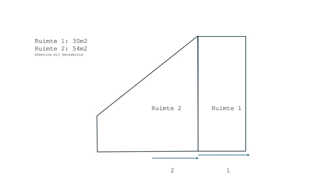 De totale oppervlakte bedraagt ca. 84 m², verdeeld over twee afzonderlijke ruimtes: