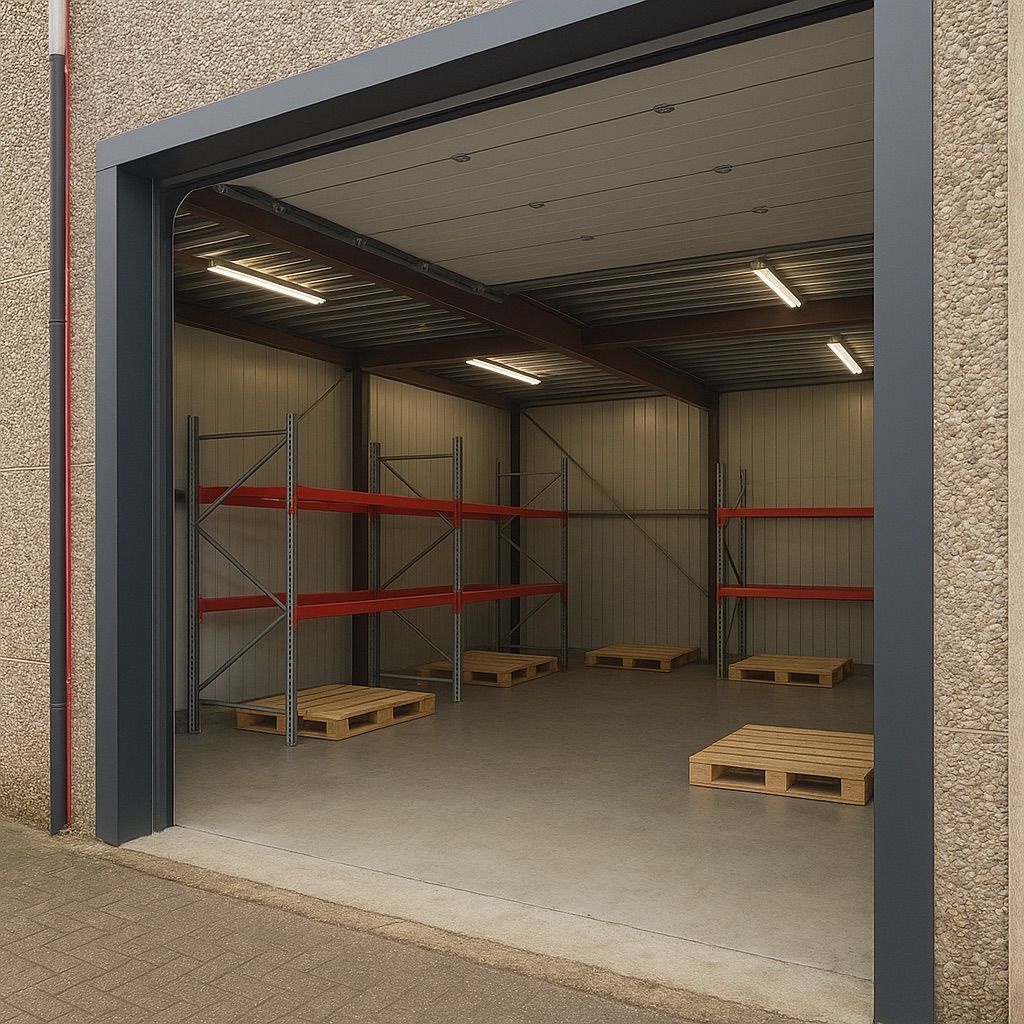 De ruimte is uitermate geschikt voor opslag, de stellingen zijn eventueel ter overname beschikbaar.