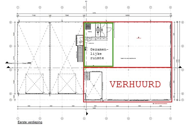 - Mogelijkheid grote materialen op de 1e verdieping te zetten via een dubbele deur