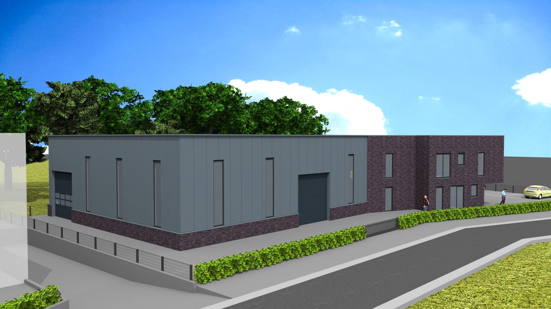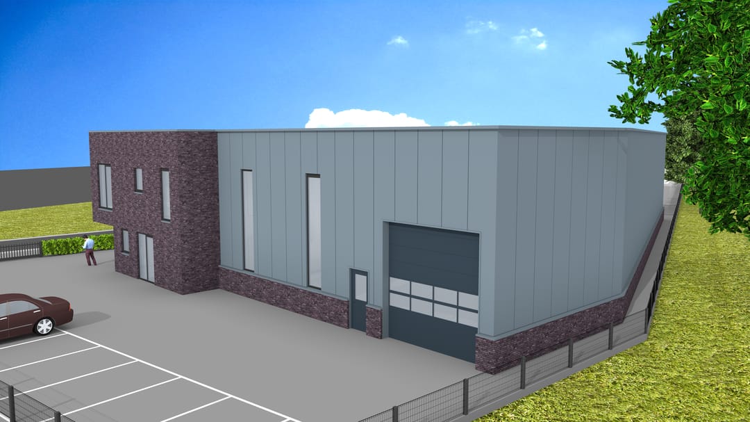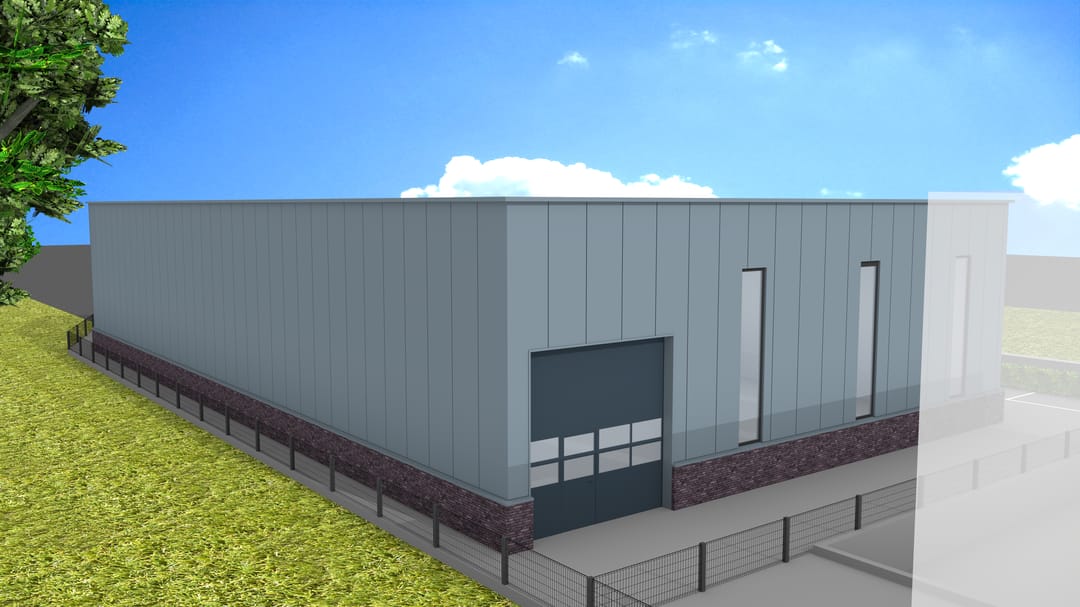 De bouw van dit bedrijfsgebouw zal medio januari 2026 van start gaan. Het gebouw zal bestaan uit circa 906 m² magazijnruimte, met op de hoek een kantoor in twee bouwlagen van in totaal circa 204 m².