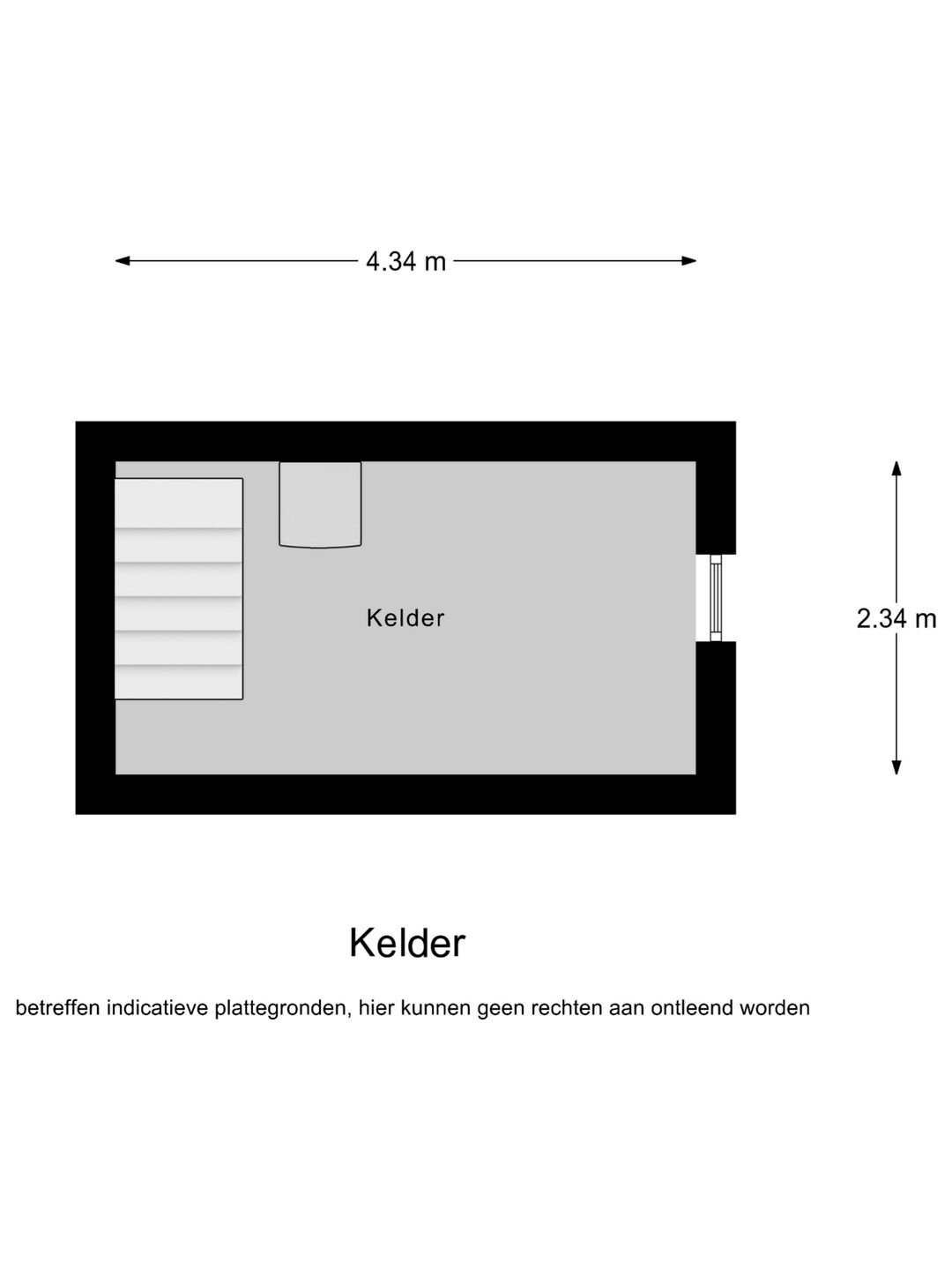 Via een trapafgang kom je in een manshoge kelderruimte van ca. 10 m². Deze ruimte is een fijne toevoeging voor het koel opslaan van proviand. Ook bevind zich hier een grondwaterpomp voor de wateraansluiting buiten.