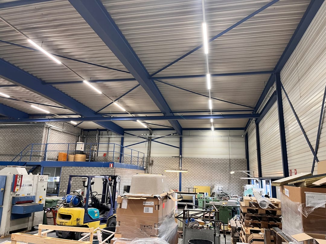 - Veel elektra-aansluitingen tegen de wanden en voorzien van led-verlichtingsarmaturen.