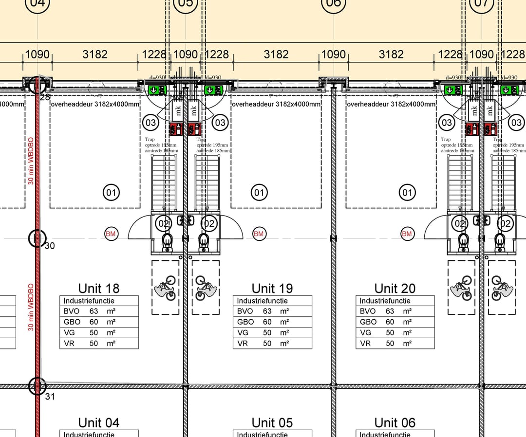- metal stud binnenwanden rondom het trappenhuis met loopdeur;