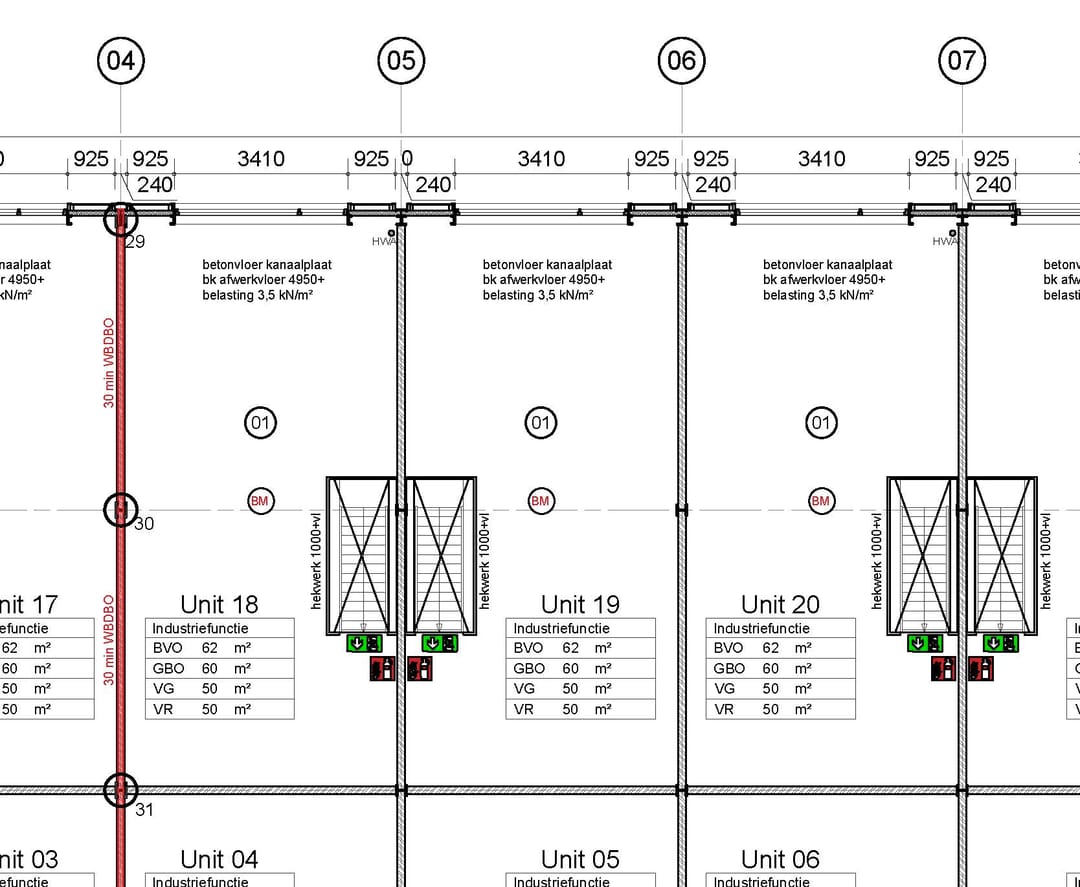 - monoliet afgewerkte betonvloer met een maximale vloerbelasting van 1.000 kg/m²;