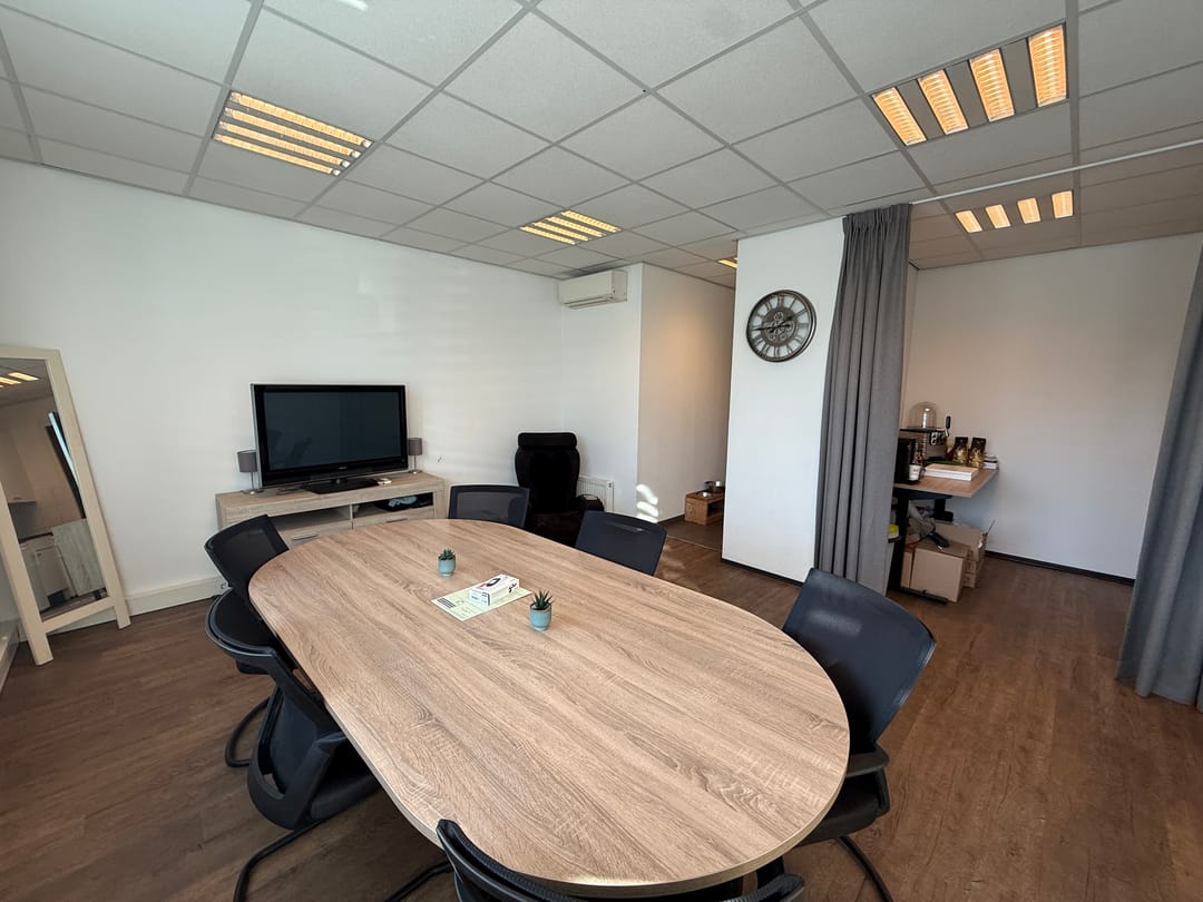 - Lichtstraten, overheaddeuren, betonvloer, heater, toilet, pantry, airconditioning en inbouwarmaturen