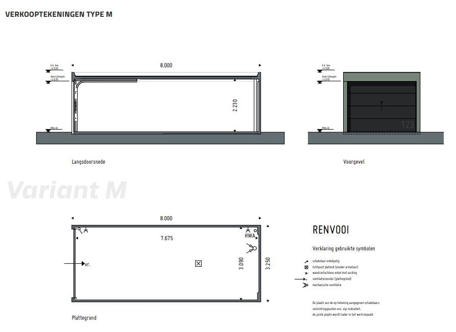 - Op de begane grond bevinden zich 11 boxen van type M;