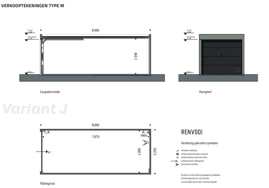 - Op de begane grond bevinden zich 11 boxen van type M;