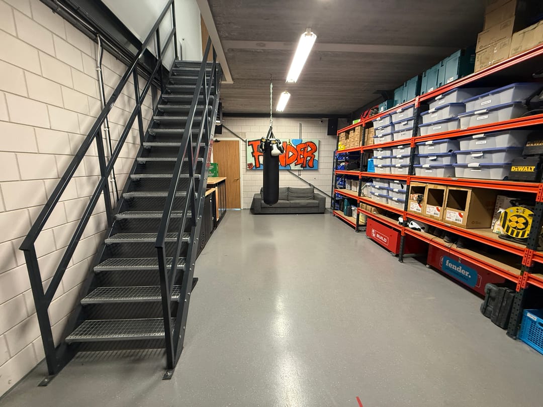 - stalen trap naar verdieping;