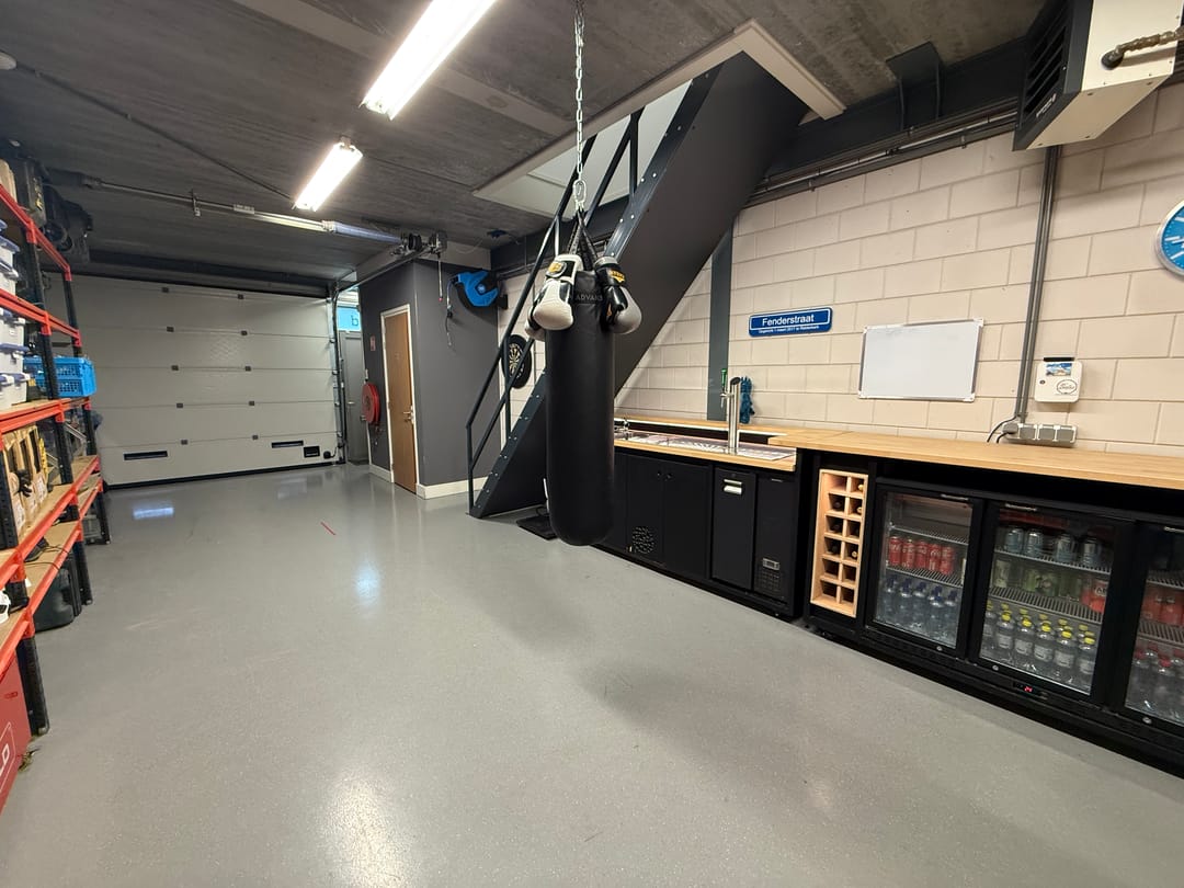 - Overheaddeuren, betonvloer, heater, toilet, pantry, airconditioning en inbouwarmaturen
