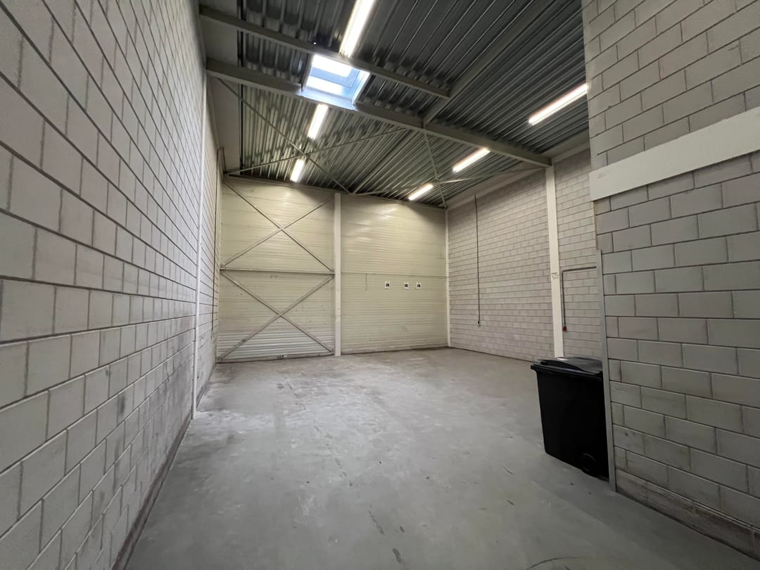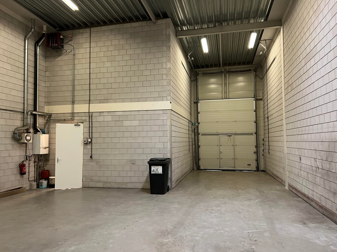 - Overheaddeuren, betonvloer, heater, toilet, pantry en inbouwarmaturen