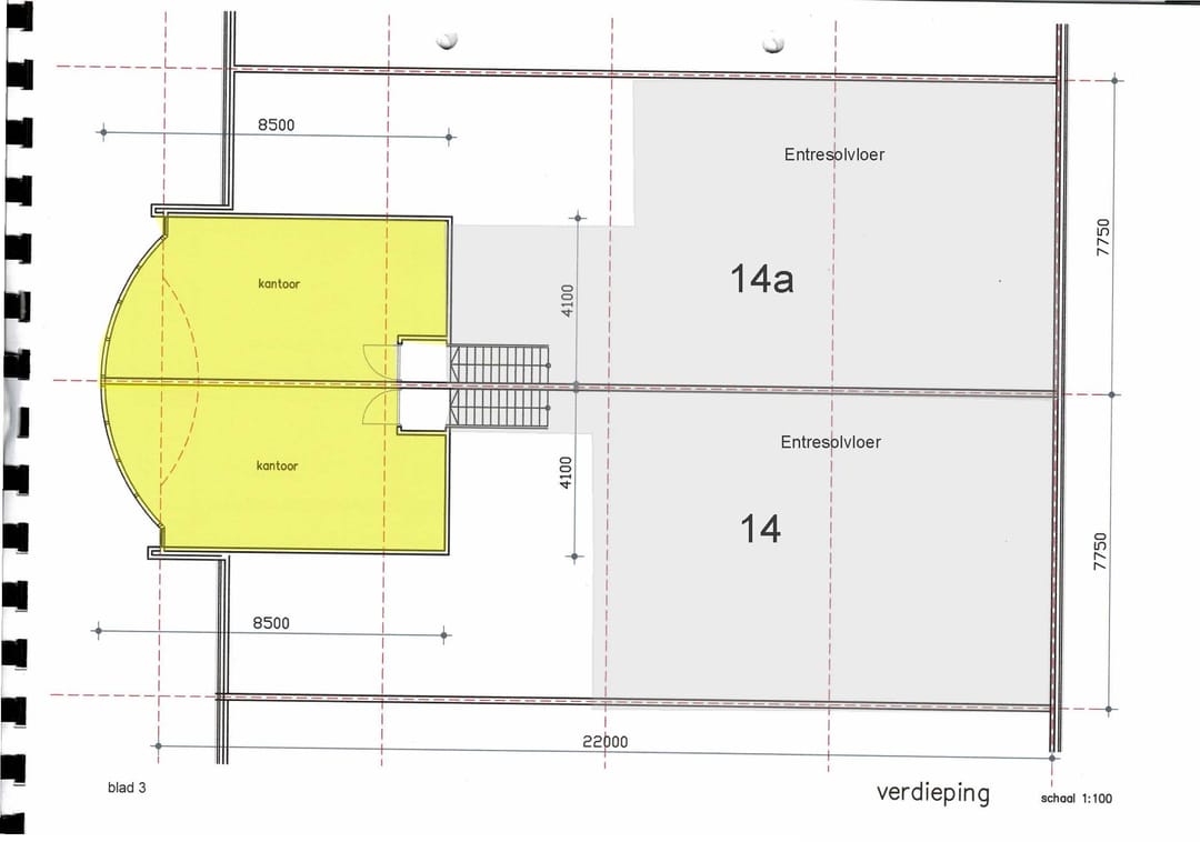- vrije hoogte onder de entresolvloer ca. 3,07 meter;