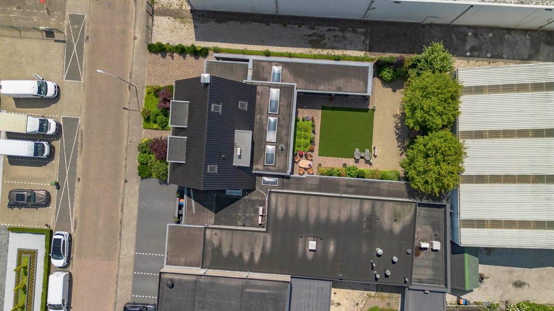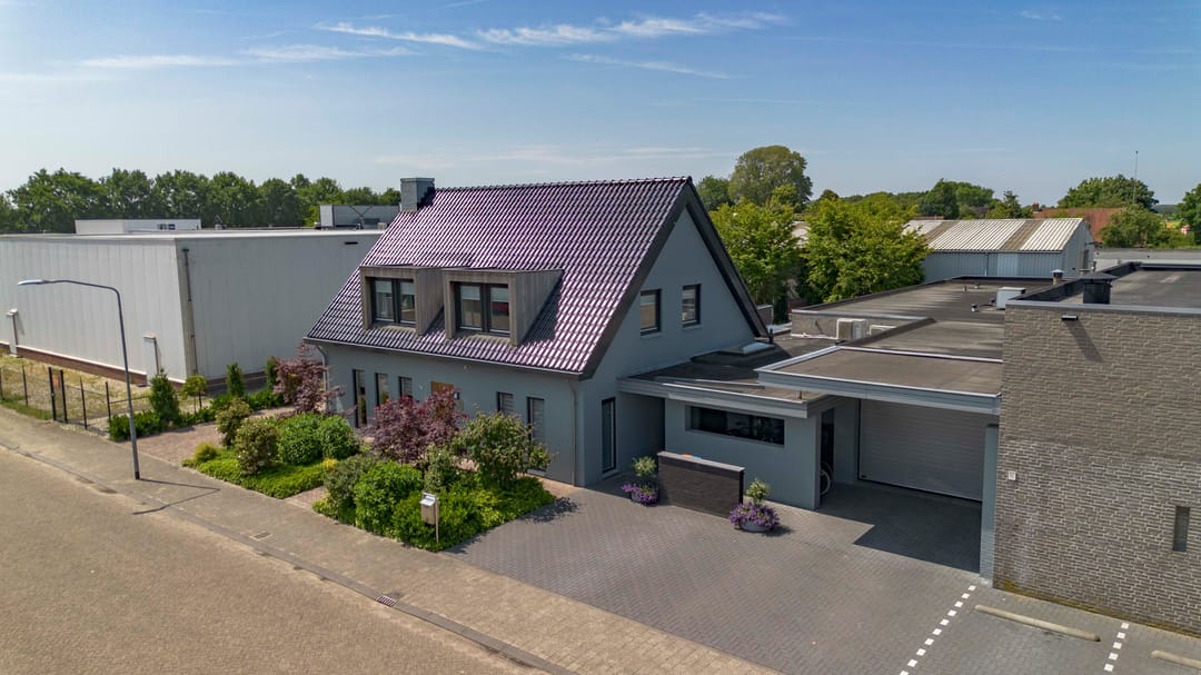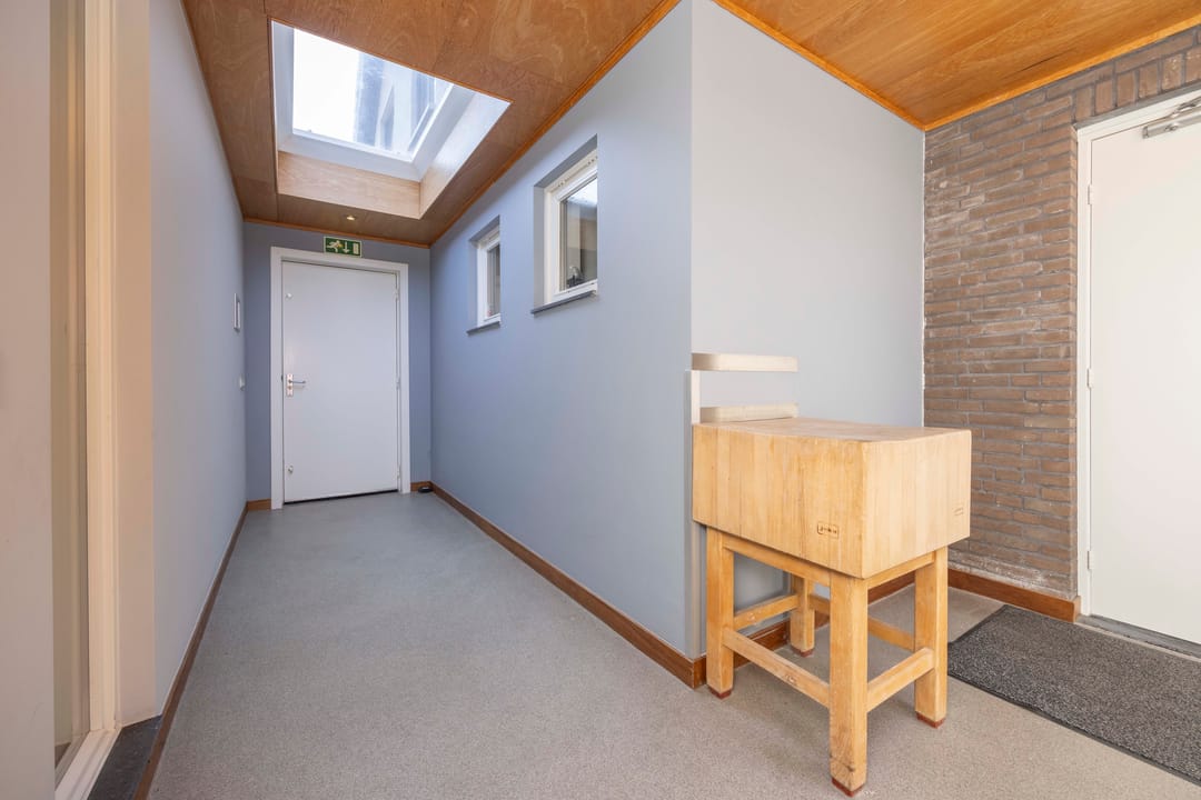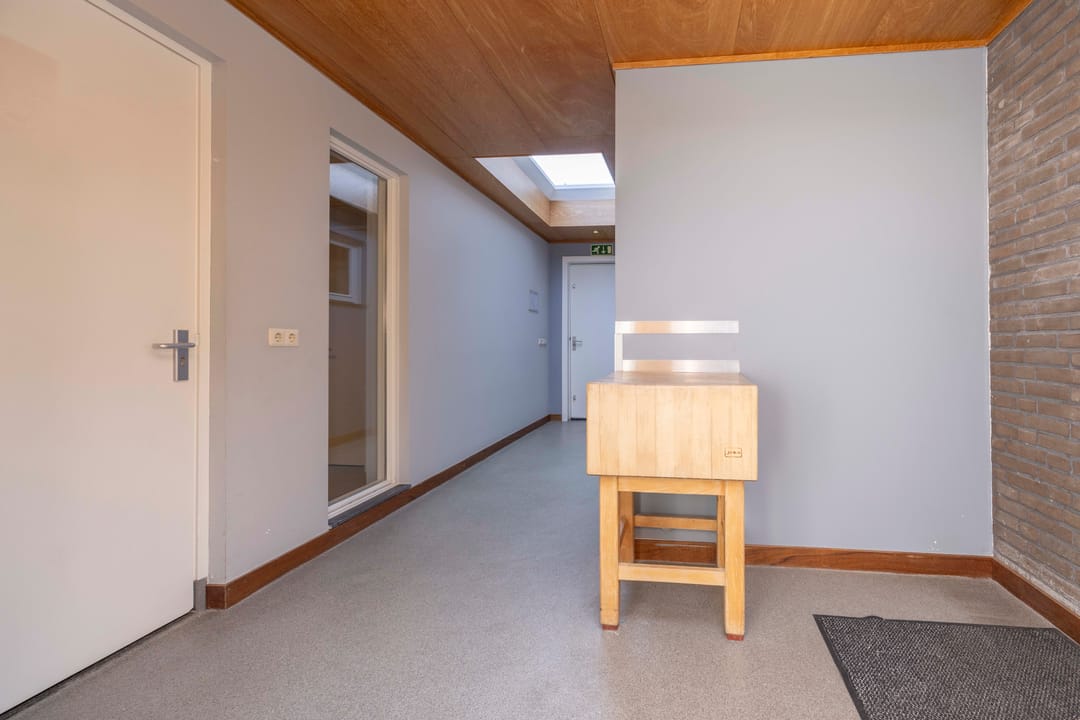 De bedrijfsruimte heeft een eigen entree en is gesitueerd rechts van de woning.