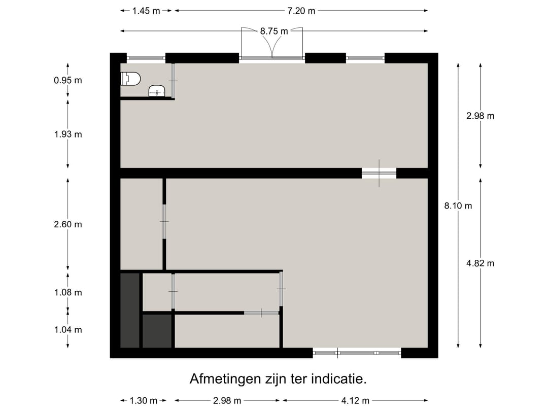 De ruimte heeft in totaal een oppervlakte van ca. 58 m² en is geheel op de begane grond gelegen.