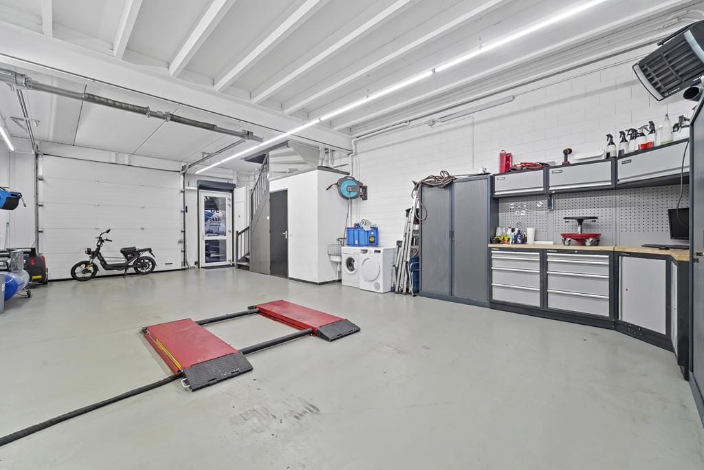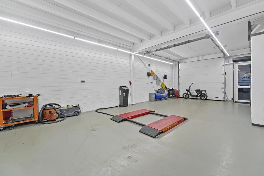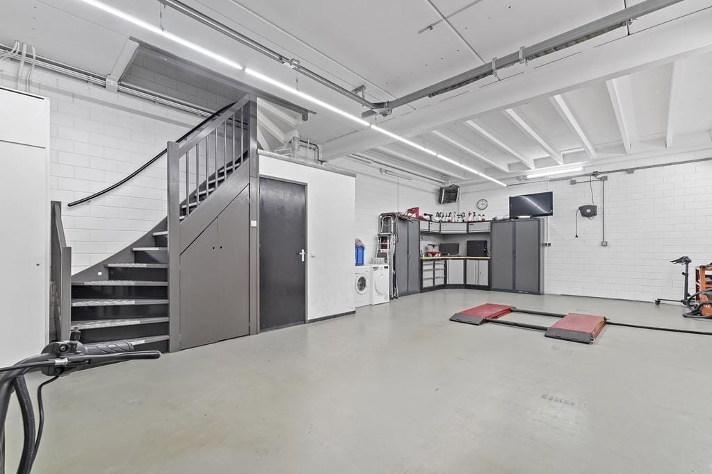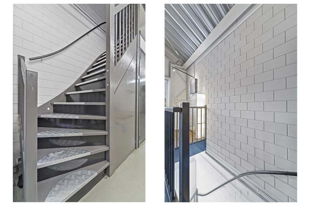 De bedrijfsruimte beschikt over een handmatig bedienbare overheaddeur en de begane grond is voorzien van een toilet met fonteintje en douche. Via de trap kan de 1ste etage met pantry worden bereikt.