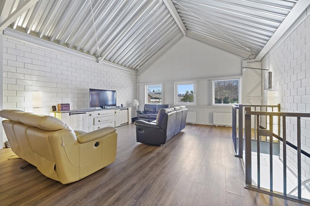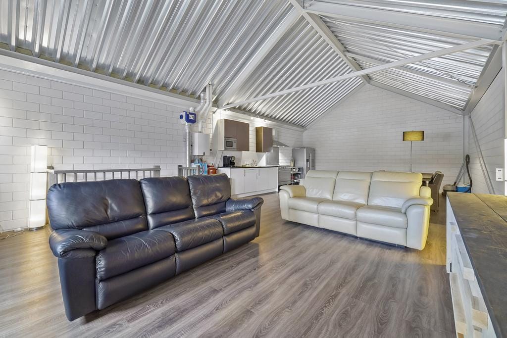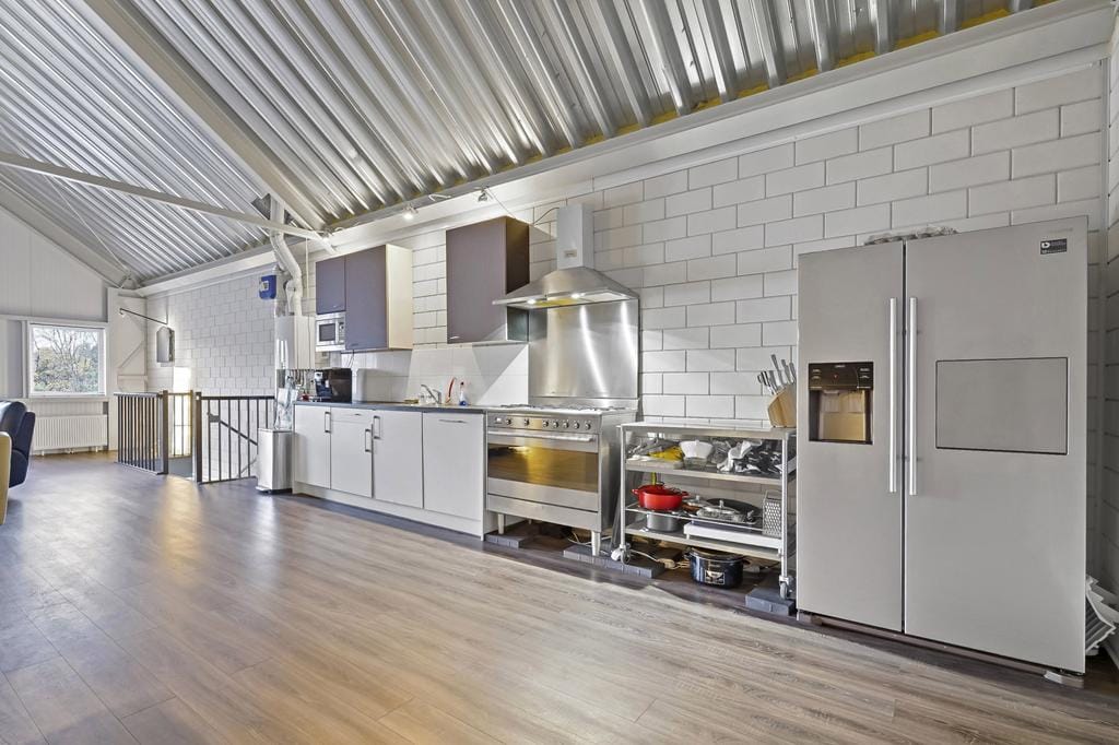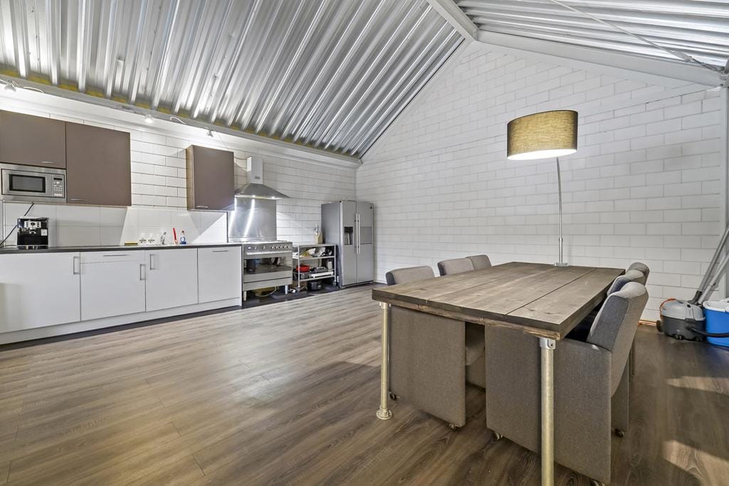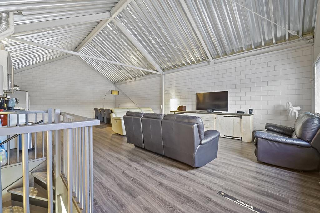 De bedrijfsruimte beschikt over een handmatig bedienbare overheaddeur en de begane grond is voorzien van een toilet met fonteintje en douche. Via de trap kan de 1ste etage met pantry worden bereikt.