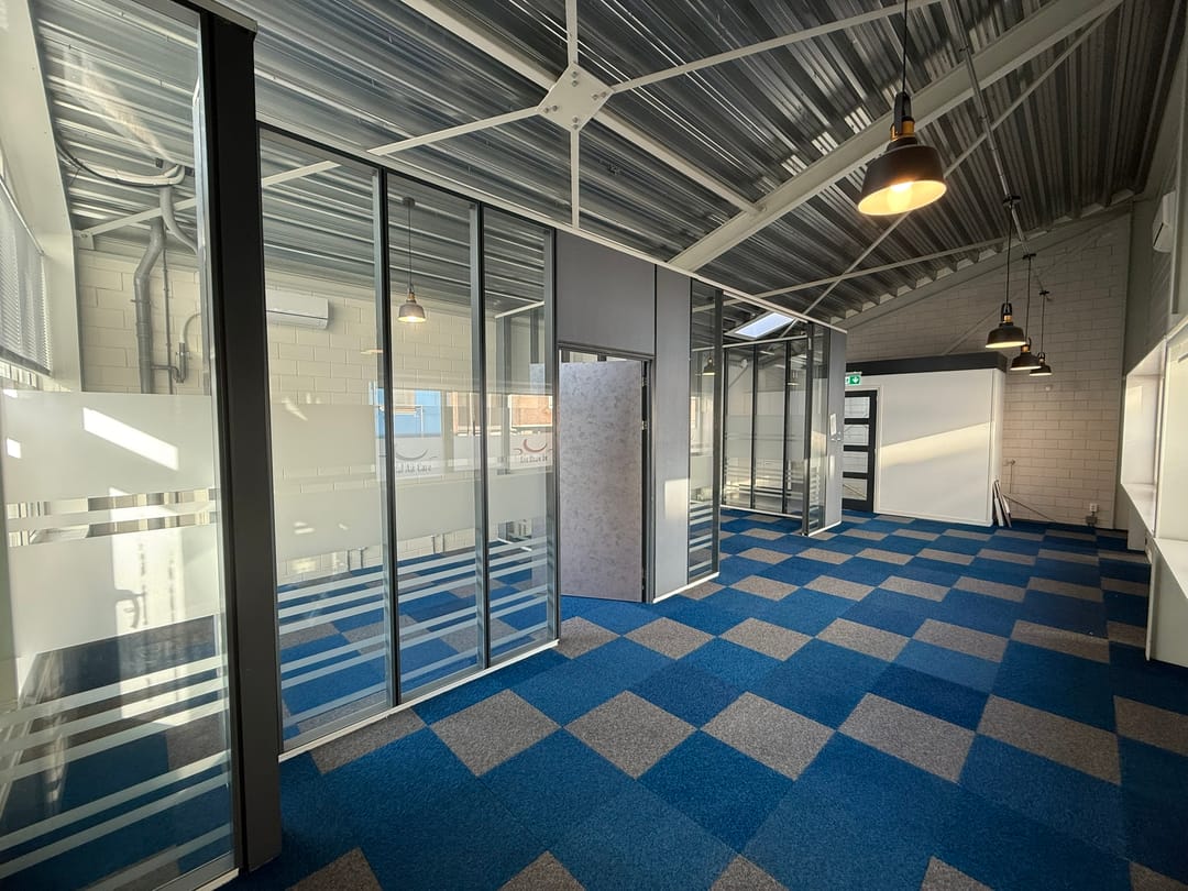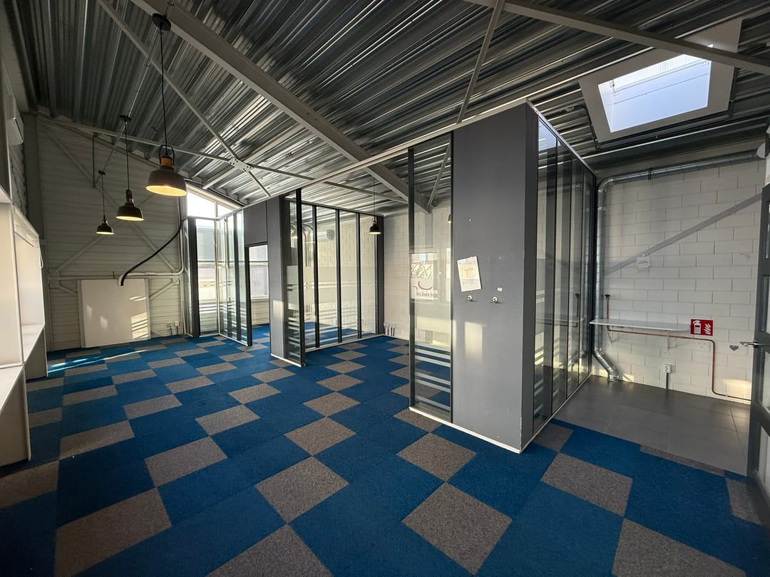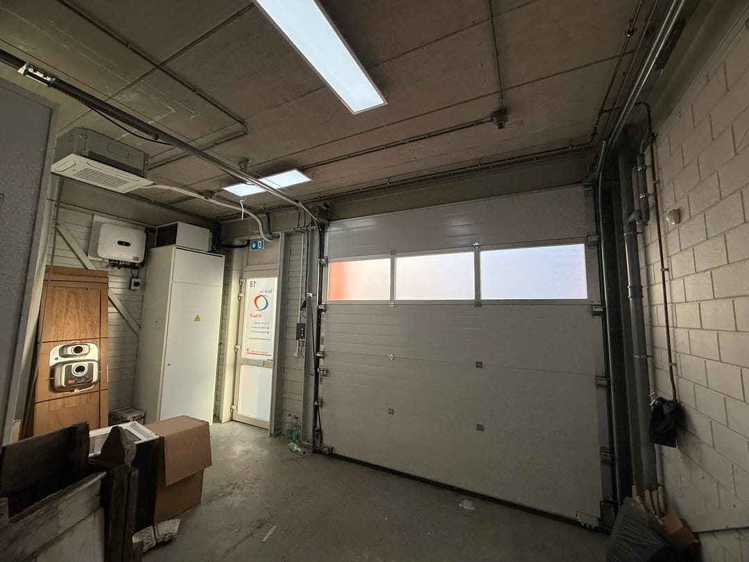 - Airconditioning, overheaddeuren, krachtstroom, betonvloer, toilet, pantry, inbouwarmaturen en te openen ramen