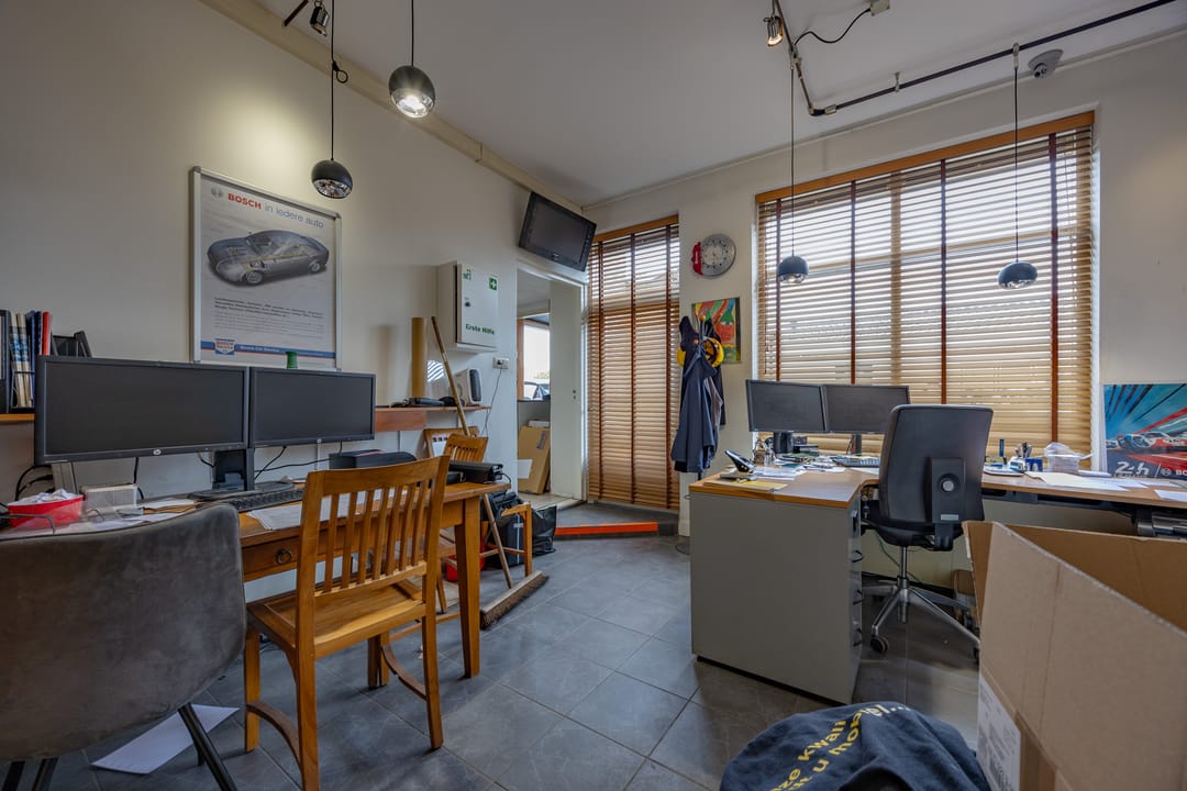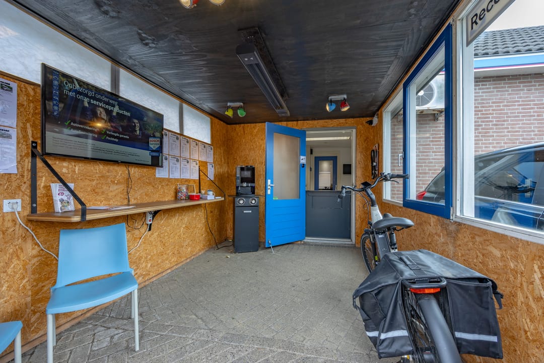 Naast de werkplaats bevindt zich op de begane grond tevens een receptie/kantoorruimte en een toilet.