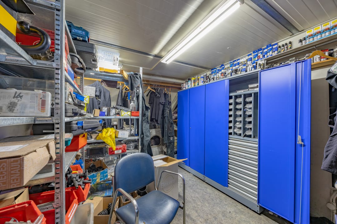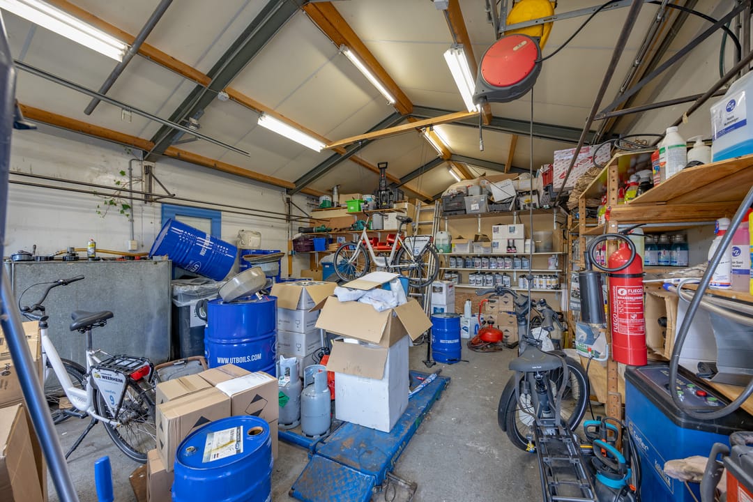 Deze kent een royale afmeting van ca. 32 m² (617x529) en in gebruik geweest als opslagruimte t.b.v. het autobedrijf.