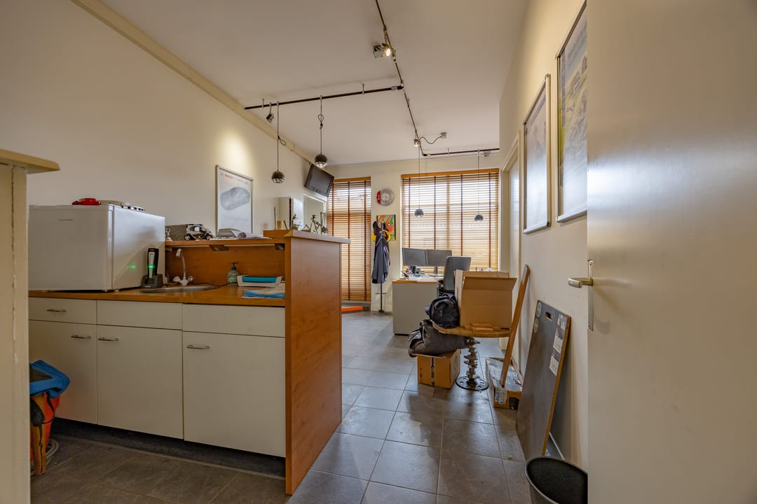 Een gedeelte van het woonhuis is op de begane grond als kantoorruimte bouwkundig toebedeeld aan de werkplaats doch op relatief eenvoudige wijze in oorspronkelijke staat terug te brengen.