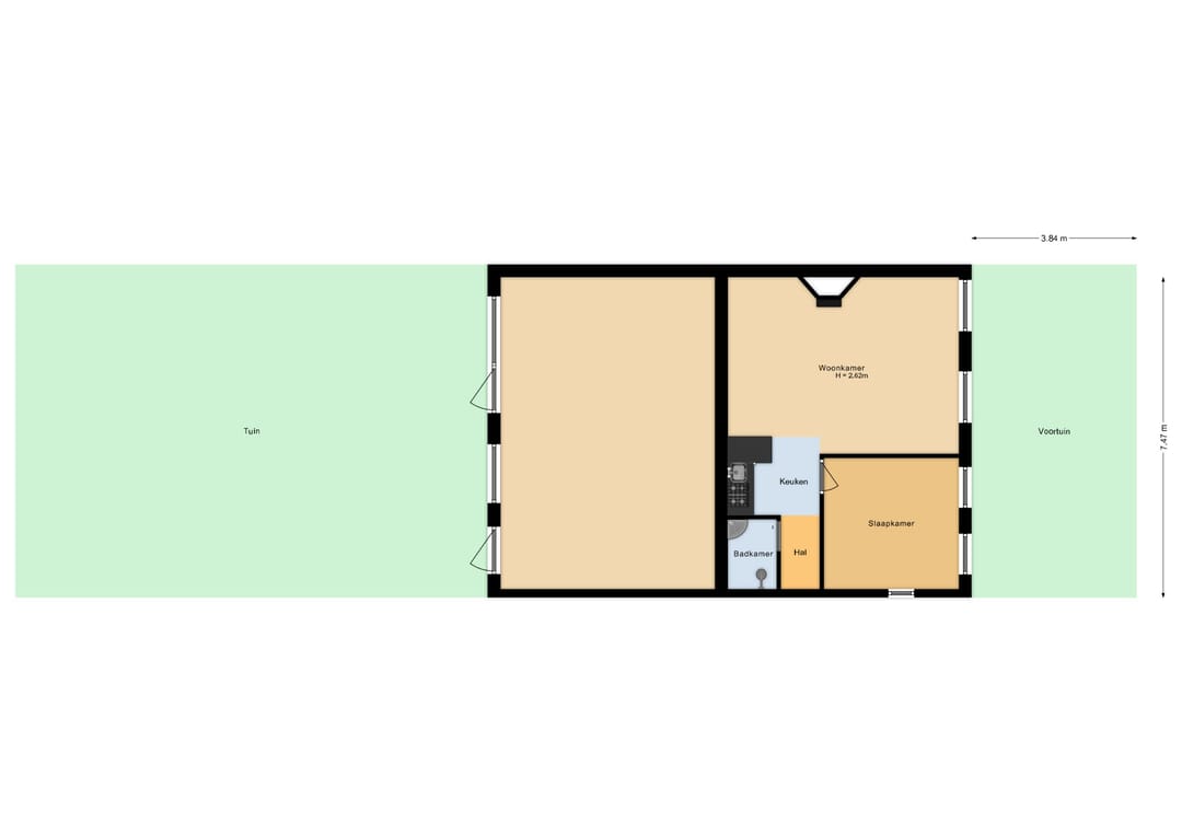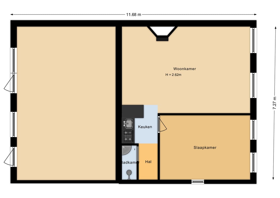 Een appartement van bescheiden afmeting, ca. 35 m² (678x510) welk thans verhuurd is tegen een jaarlijkse huursom van € 7.800,=