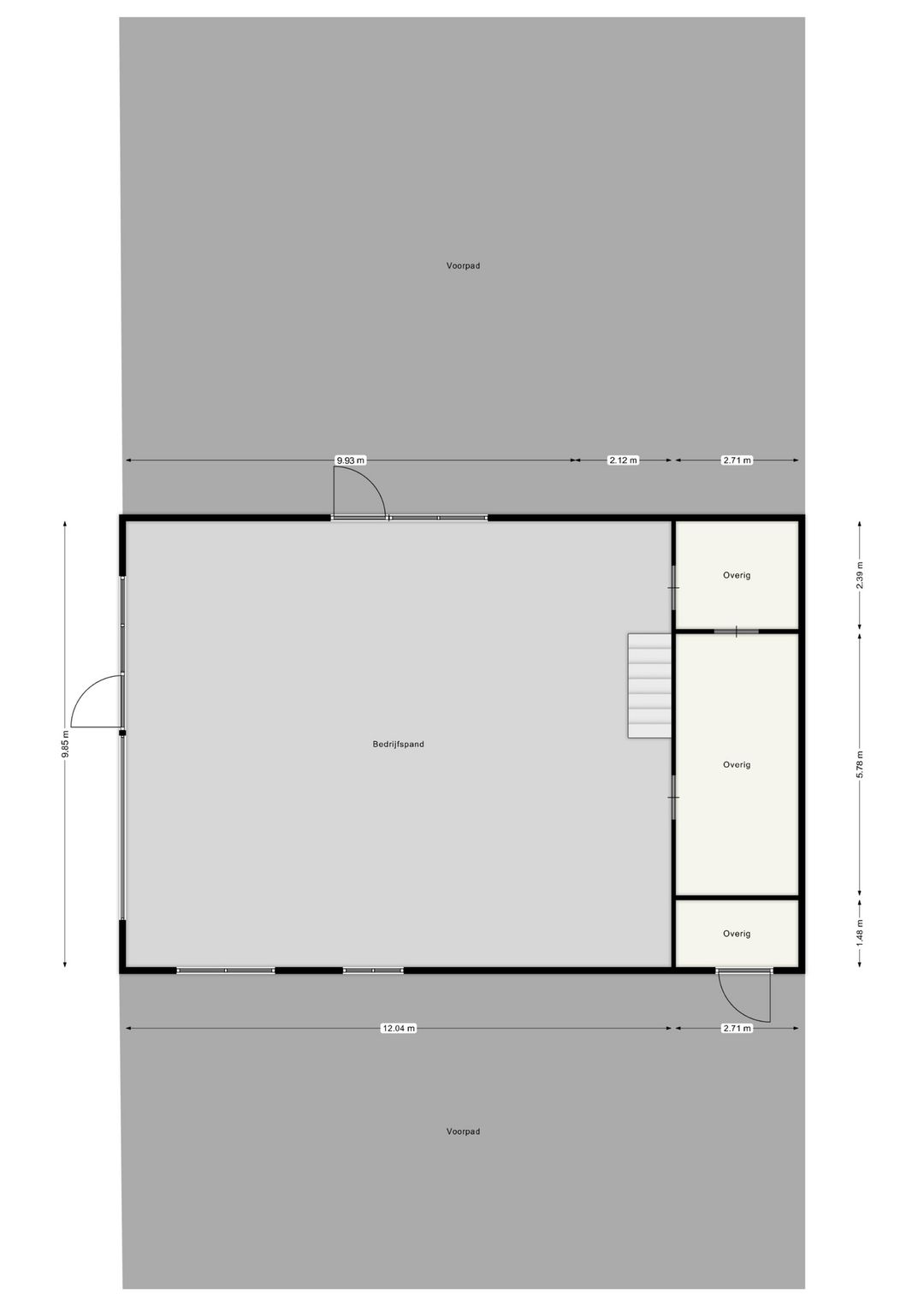Met een basismaat van ca. 14 x 10 m² kent het een bijzonder goede functionaliteit mede door de elektrisch bedienbare overheaddeur en een nokhoogte van ca. 5 m.
