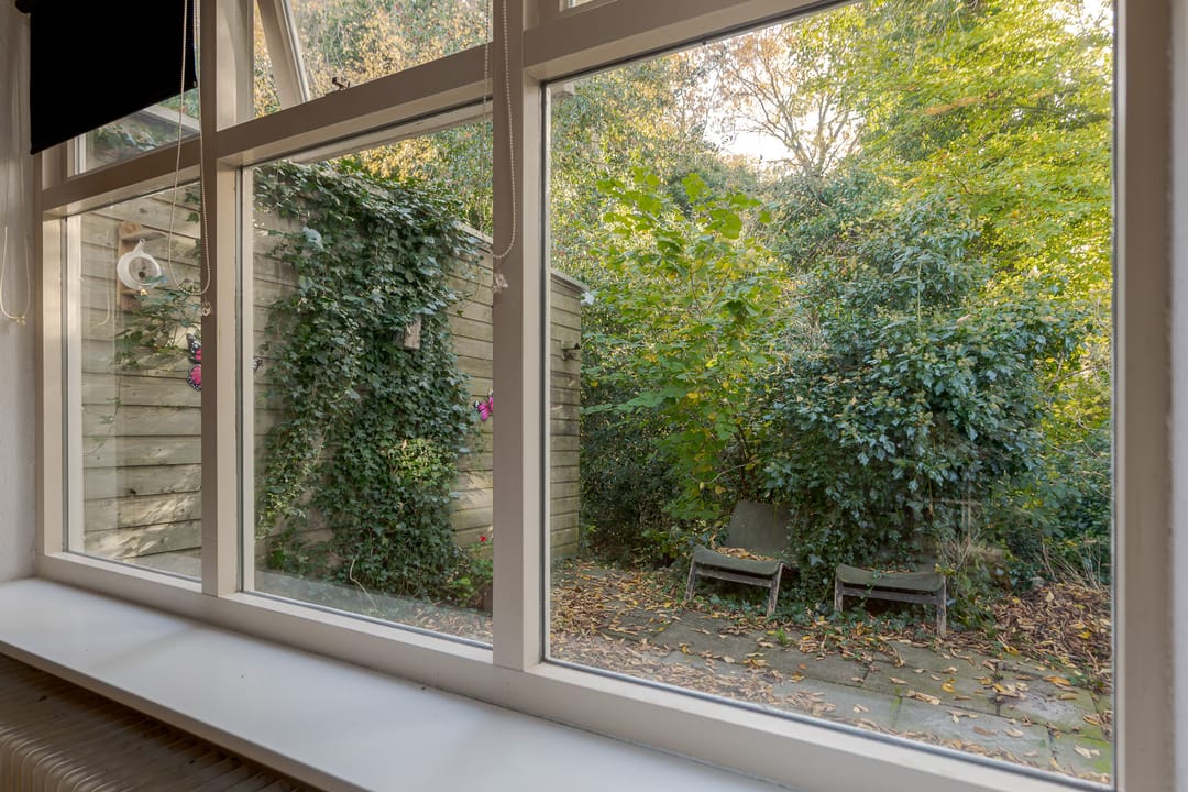 Via een vaste trap bereik je het platte dak, waarop in 2022 dertig zonnepanelen zijn geplaatst met een totaal vermogen van circa 12 kW.