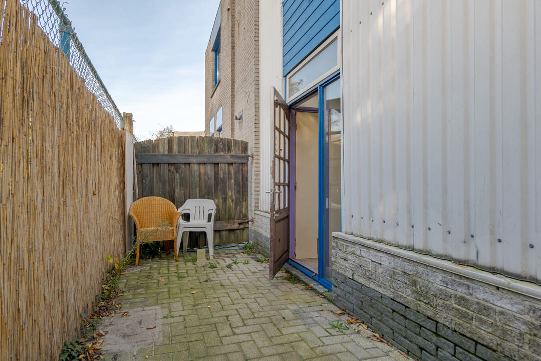 Rondom ligt een bescheiden, onderhoudsvriendelijke tuin. Achter de loods staan nog enkele eenvoudige houten bergingen en grenst het perceel aan gemeentelijk groen.