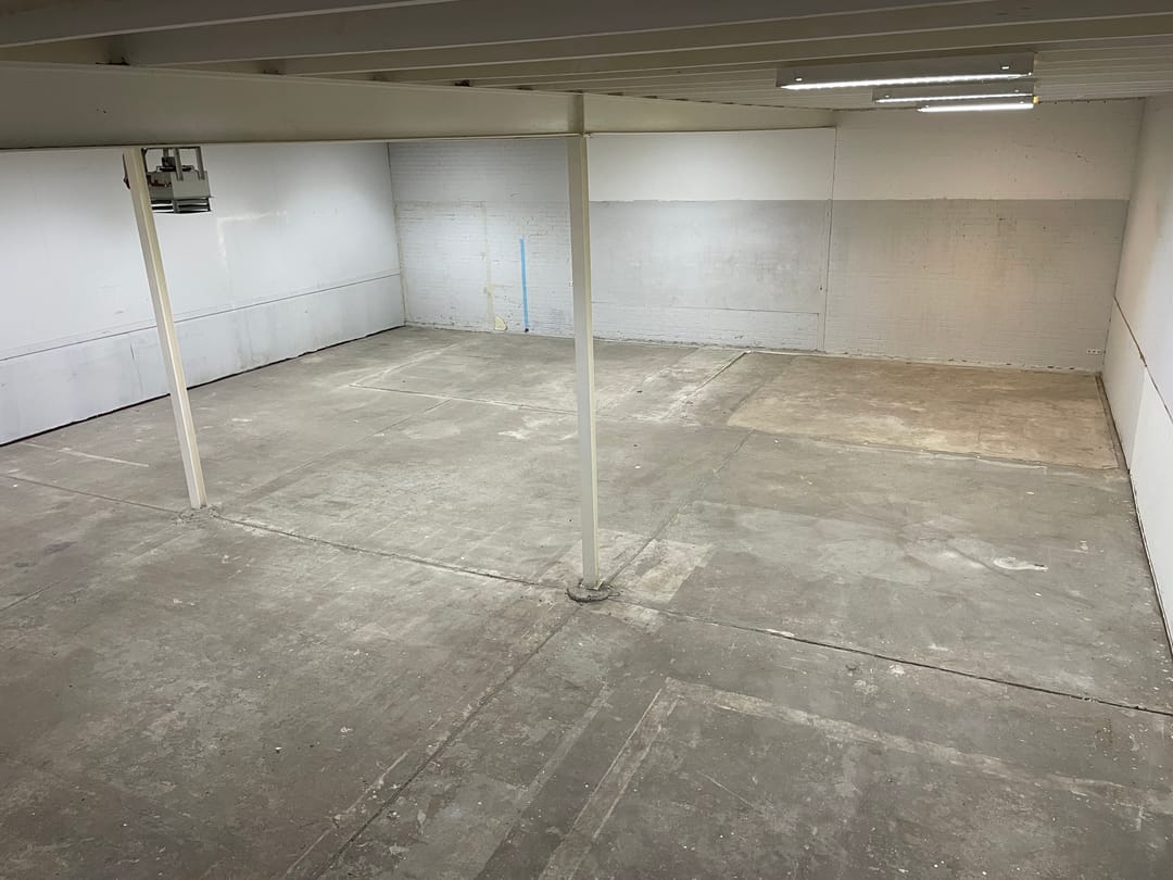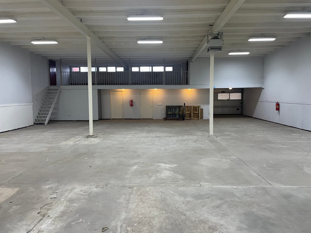 De bedrijfshal heeft een totale oppervlakte van circa 300 m². Hiervan is ongeveer 250 m² ingericht als bedrijfsruimte en circa 50 m² als pantry, ontvangstruimte en toiletvoorziening. Aanvullend beschikt het pand over een mezzanine van circa 35 m², die uitstekend kan worden gebruikt voor extra opslag of ondersteunende werkzaamheden.