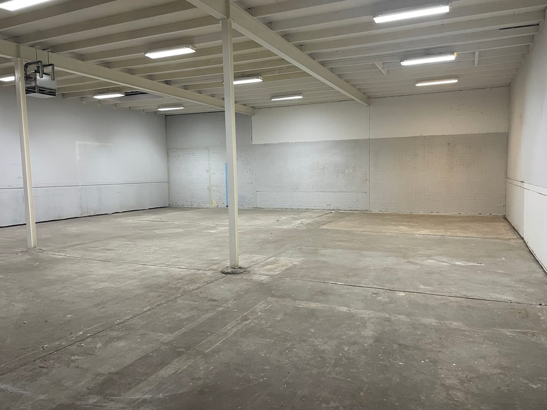 - Lichtstraten, loading docks, overheaddeuren, betonvloer, toilet en pantry