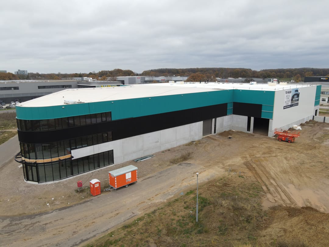 Deze opvallende multifunctionele bedrijfspanden worden in 5 delen gefaseerd gebouwd. De bouw van de eerste fase is begonnen in 2025 en de eerste 2 units worden opgeleverd begin 2026. De panden bevinden zich op een prominente locatie langs een doorgaande weg. Het biedt diverse mogelijkheden voor bedrijven, zoals de opslag van bedrijfswagens en de inrichting van een showroom op de begane grond. De grote glazen kozijnen zorgen voor veel natuurlijk licht in het interieur. Bezoekers kunnen gebruikmaken van voldoende bewaakte parkeermogelijkheden. Het totale vloeroppervlak van de gebouwen beslaat ongeveer 14.500 m² en bestaat uit 5 panden, variërend in grootte van ca. 2.500 m² tot ca. 3.200 m². Door gebruik te maken van verdiepingsvloeren kan de beschikbare vloeroppervlakte naar wens worden verdubbeld. Daarnaast is het mogelijk om de panden onderling te koppelen en zo een grotere ruimte te creëren.