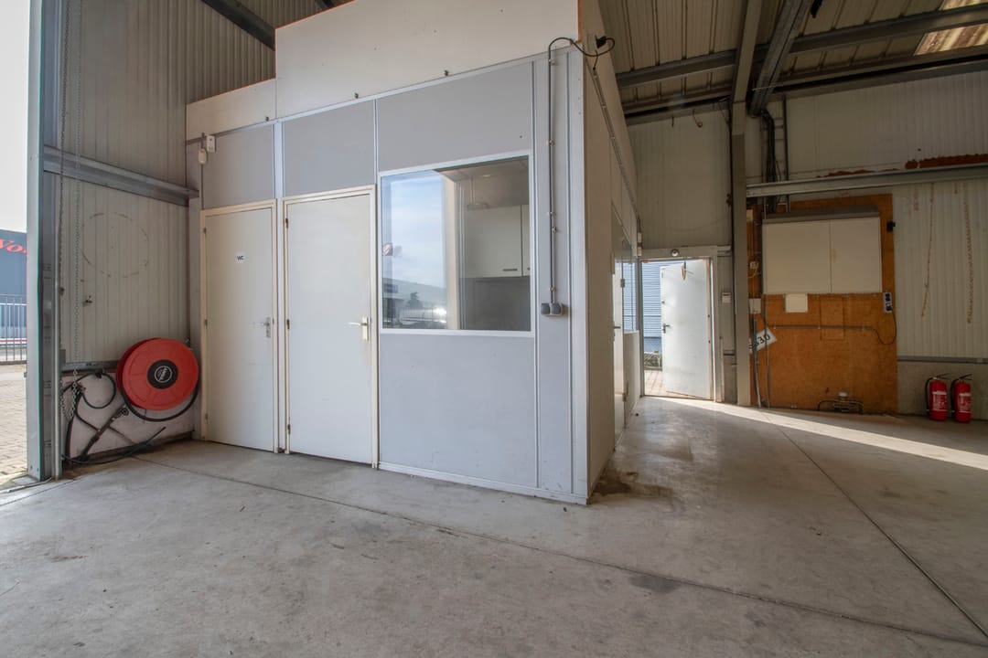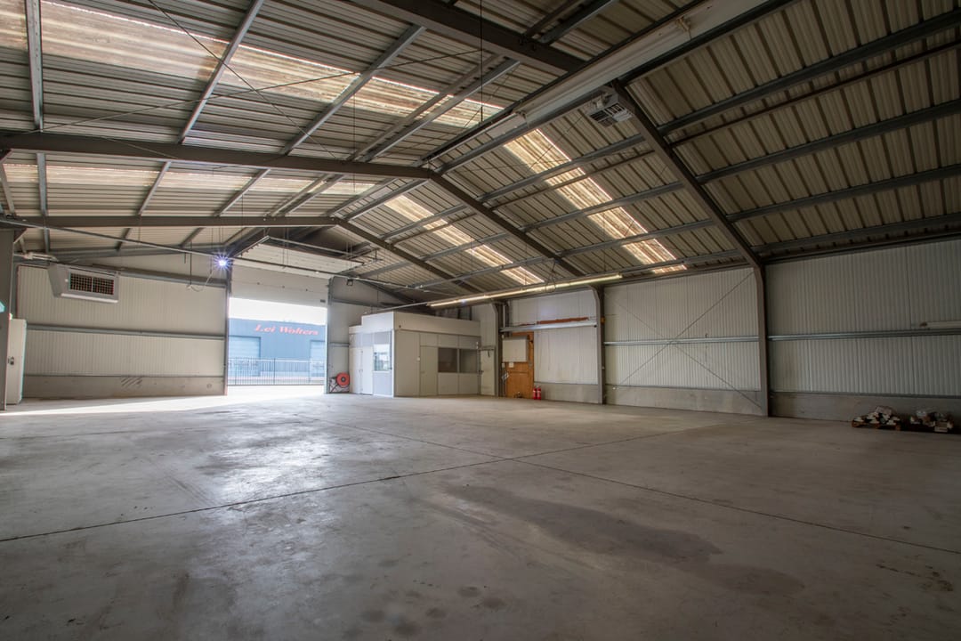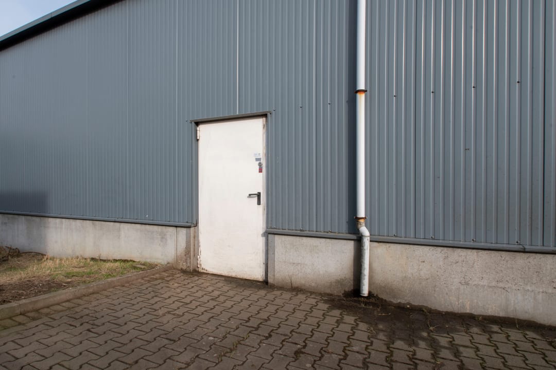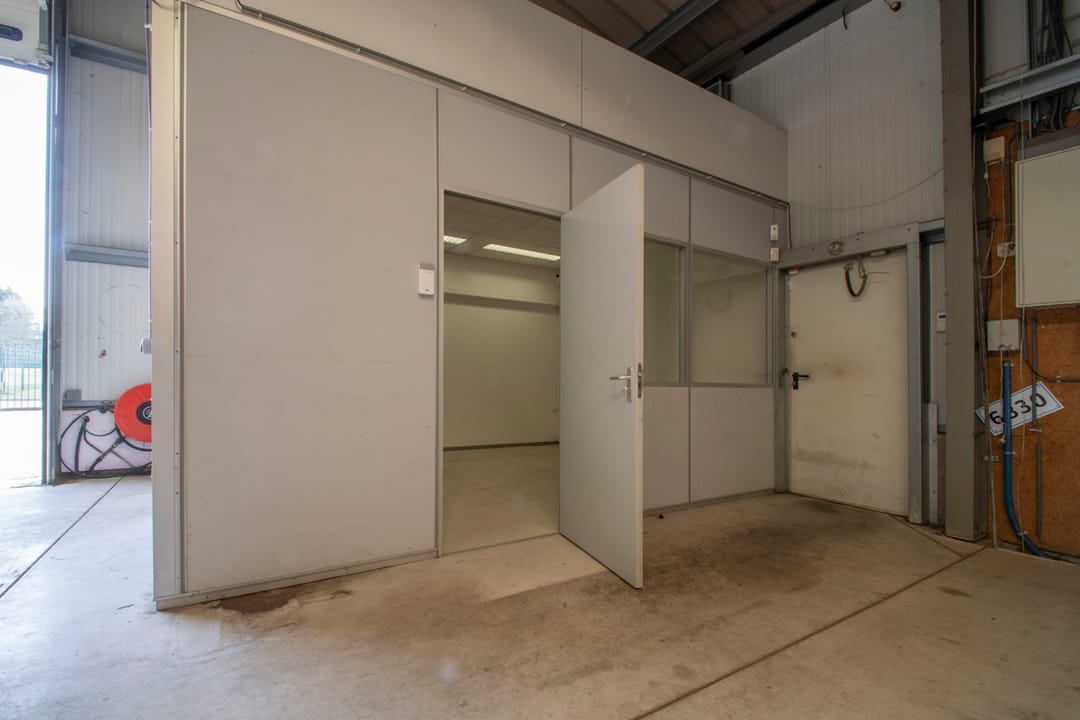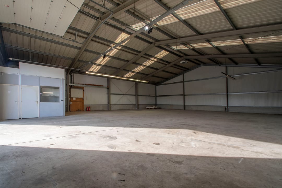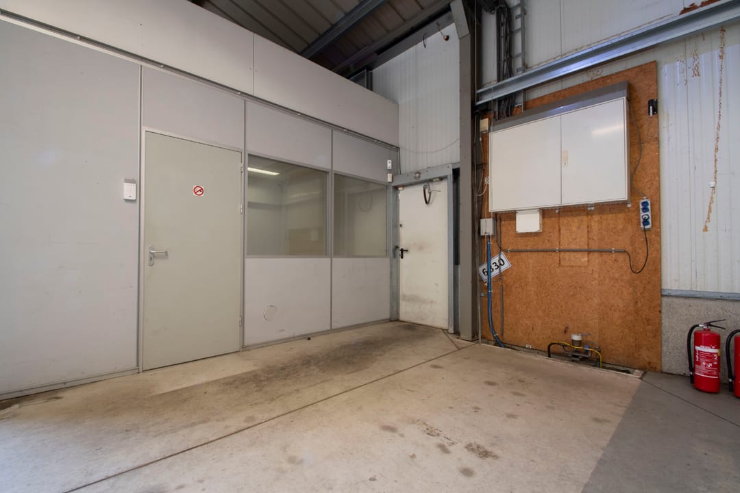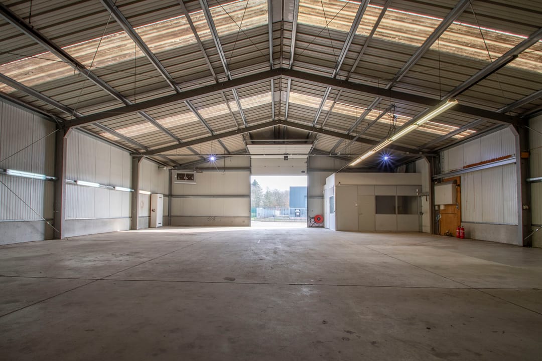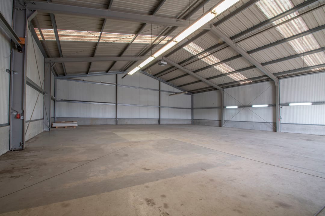 De loods is voorzien van een betonvloer, een lichtstraat, een hoge overheaddeur en een loopdeur aan de zijkant, waardoor zowel goederen als personen eenvoudig toegang hebben tot de bedrijfsruimte. Het terrein is afgesloten en voorzien van een elektrische poort, wat bijdraagt aan veiligheid en gecontroleerde toegang. Aan de voorzijde van het pand is het terrein beklinkerd, terwijl de zijkanten voorzien zijn van gras, wat een nette en verzorgde uitstraling geeft.