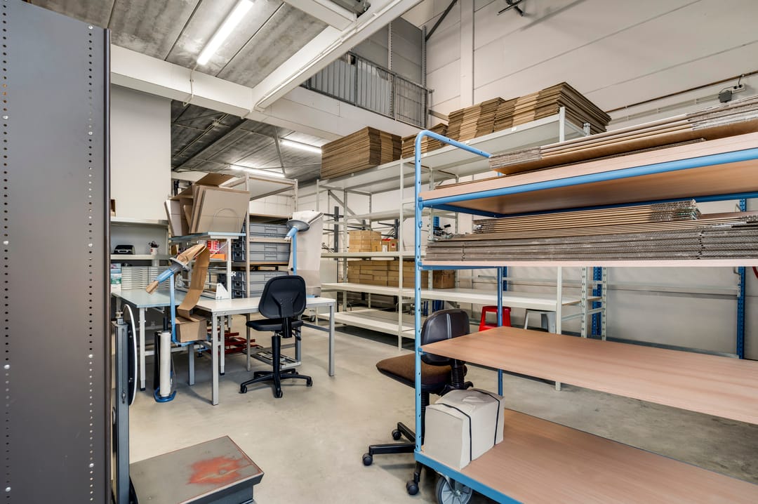 - Airconditioning, mechanische ventilatie, lichtstraten, overheaddeuren, krachtstroom, betonvloer, heater, toilet, pantry, inbouwarmaturen en te openen ramen