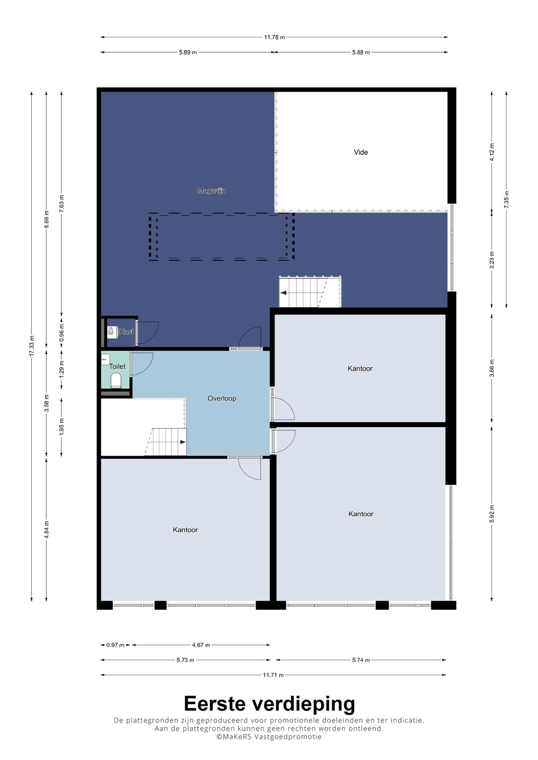 Eerste verdieping (kantoren & magazijn)