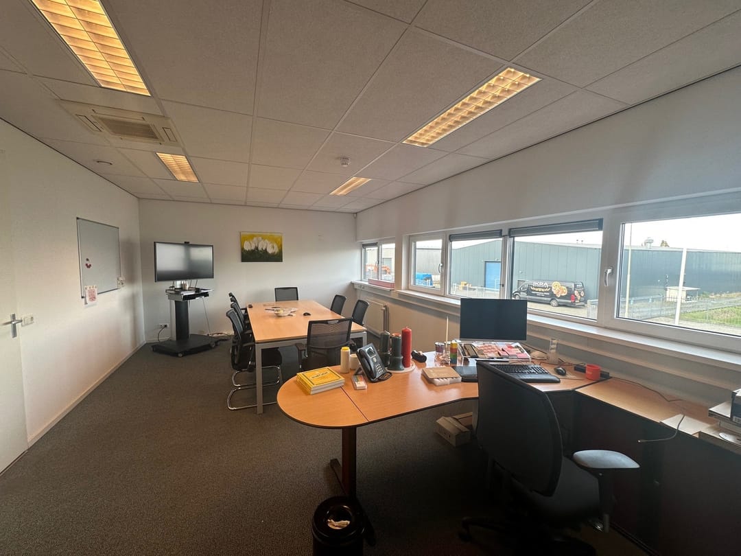 Aan de voorzijde bevindt zich een representatieve kantoorvleugel in twee lagen (ca. 2 × 224 m²) met entree, ontvangsthal, showroom of spreekkamer, meerdere kantoorvertrekken, kantine en toiletten. De kantoren zijn onder andere voorzien van systeemplafonds met inbouwarmaturen, airco-luchtbehandeling per vertrek, te openen ramen met screens, vloerafwerking en netwerkbekabeling.