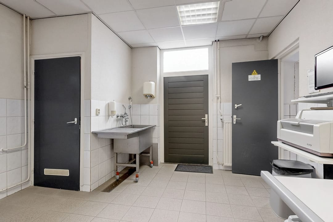 Bij binnenkomst treft u een entree/ontvangsthal die toegang biedt tot de ontvangstruimte en overige (kantoor)ruimtes. In totaal zijn er zes ruimtes aanwezig, die flexibel zijn in te delen. Momenteel worden vier van de ruimtes gebruikt als behandelkamer. Deze ruimtes zijn voorzien van een tegelvloer. De overige twee ruimtes worden als wachtkamer en kantoor/receptie gebruikt. Drie van de ruimtes beschikken over praktische kastruimte. Twee ruimtes zijn uitgerust met een eigen pantry voorzien van een wasbak met mengkraan en extra kastruimte. Daarnaast zijn er twee separate bergingen aanwezig. De toiletruimte is uitgevoerd met een toilet en fonteintje.