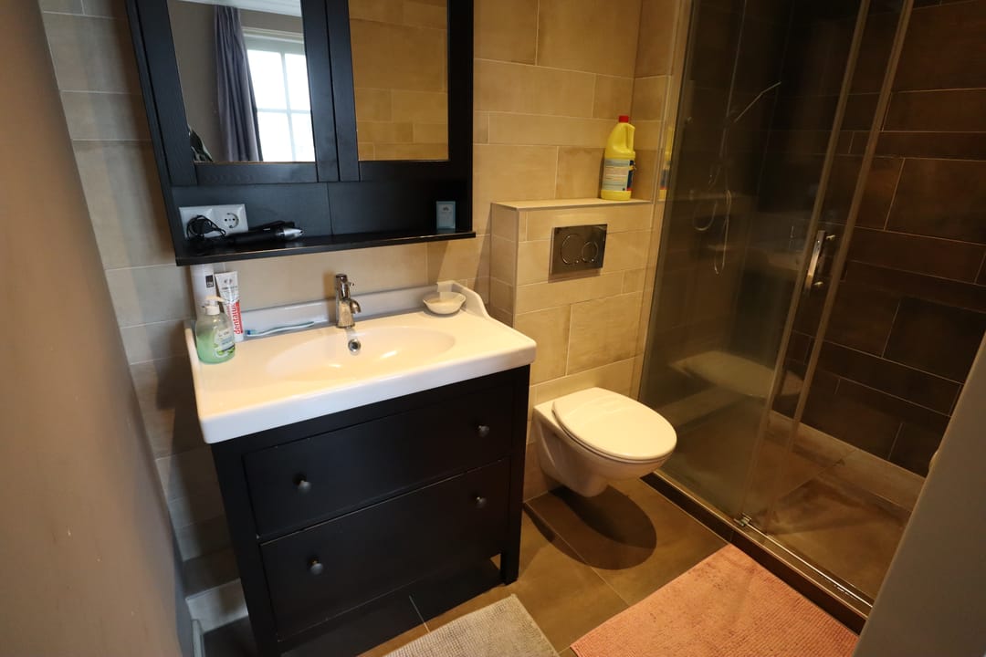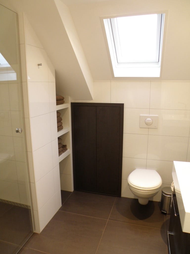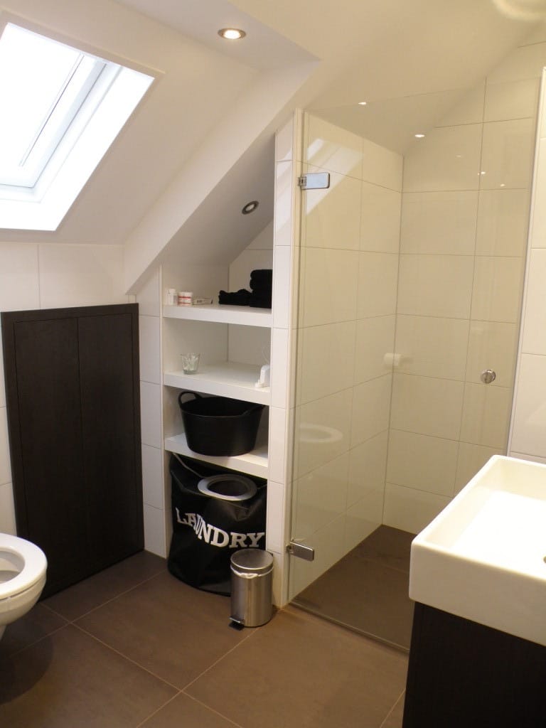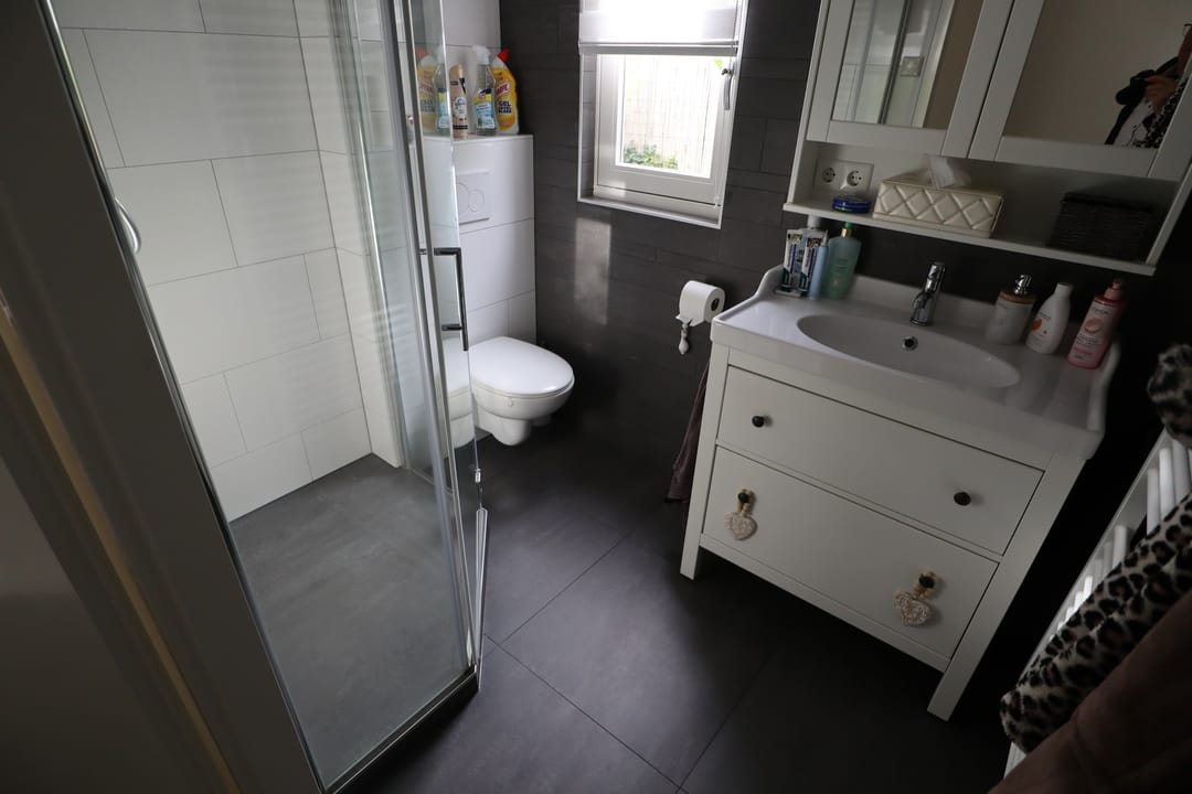 • Badkamer voorzien van inloopdouche, wandcloset en vast wastafelmeubel.
