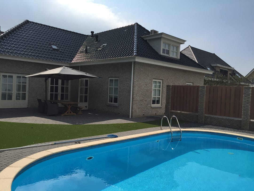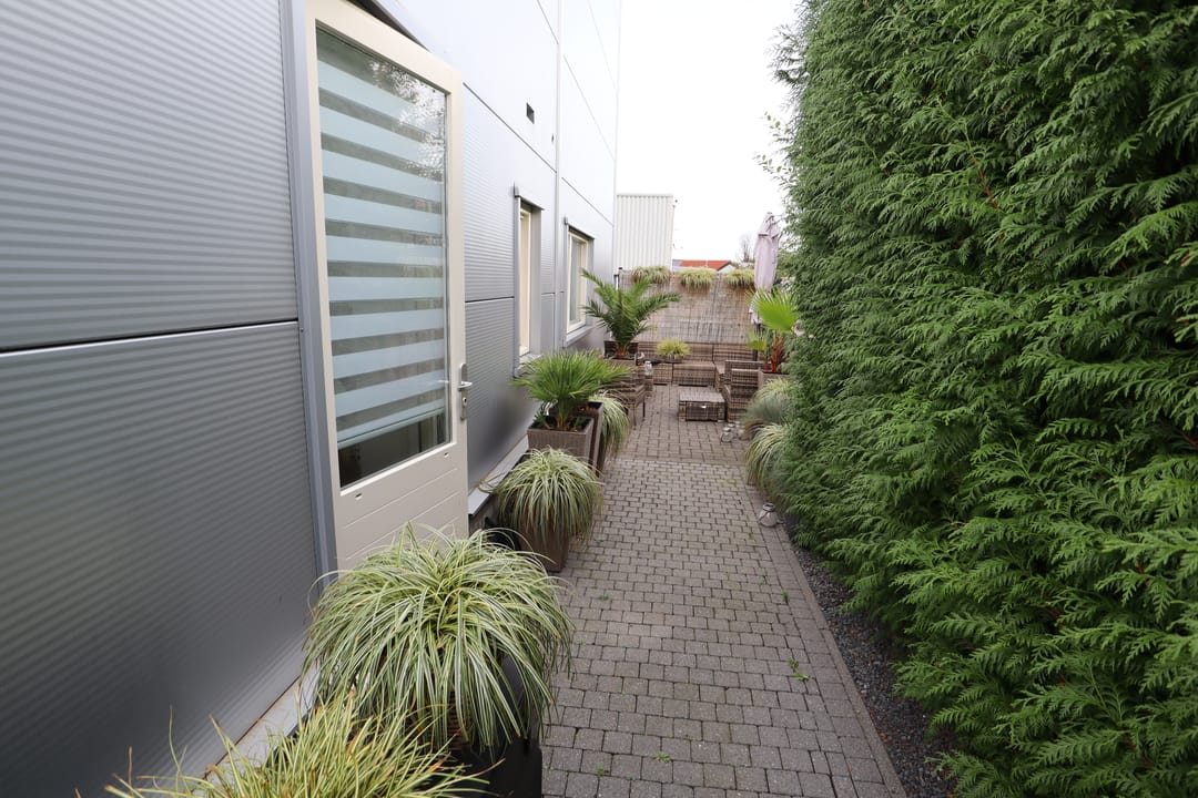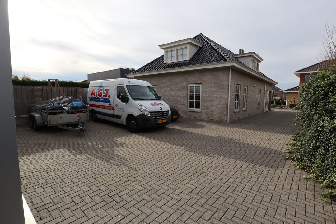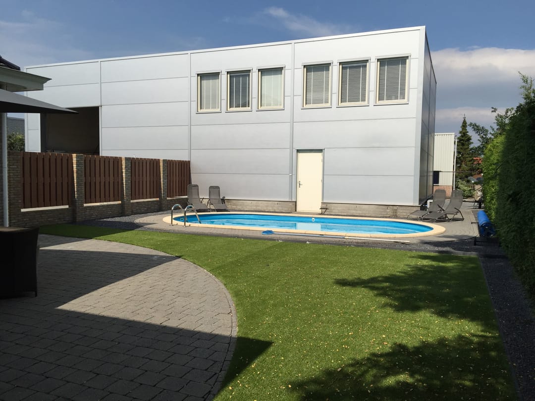 Entree via brede oprit naast de royale voortuin met aan de zijkant/achterkant van de woning royale parkeermogelijkheden en achter de woning een tuin met zwembad. De loods is goed bereikbaar vanuit de oprit/parkeermogelijkheden en de units aan de achterzijde zijn goed bereikbaar via een breed bestraat pad aan de achterzijde.
