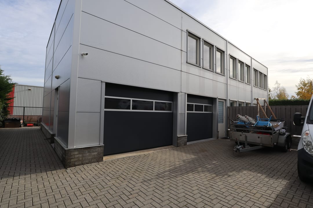 Loods/werk/opslagruimte bestaande uit twee garages met twee grote professionele overheaddeuren (momenteel in eigen gebruik).