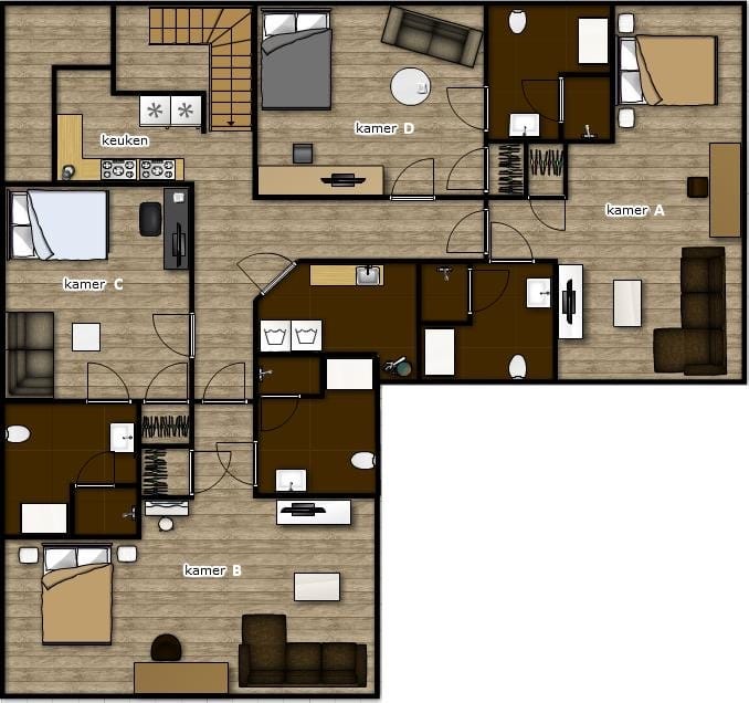 Indeling eerste verdieping boven begane grond woonhuis/bungalow: