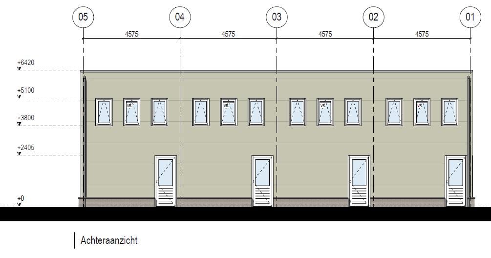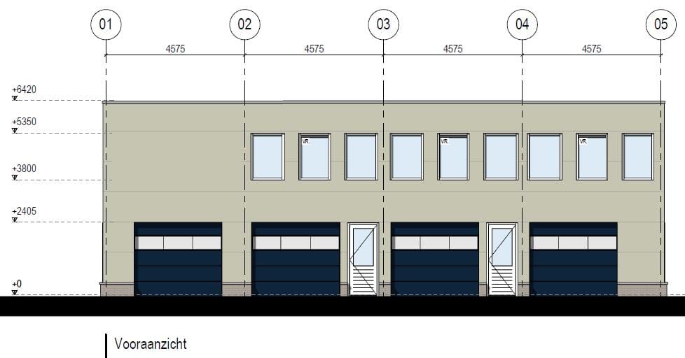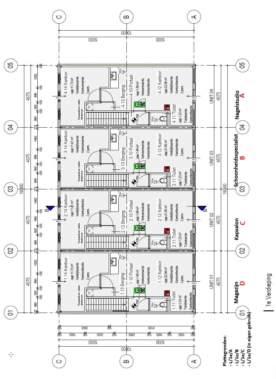 Bedrijfsunit vergelijkbaar met L/1e/A, echter met mogelijkheid tot uitbreiding op de begane grond (opslag en/of één of twee garages).