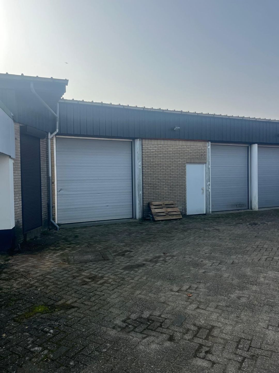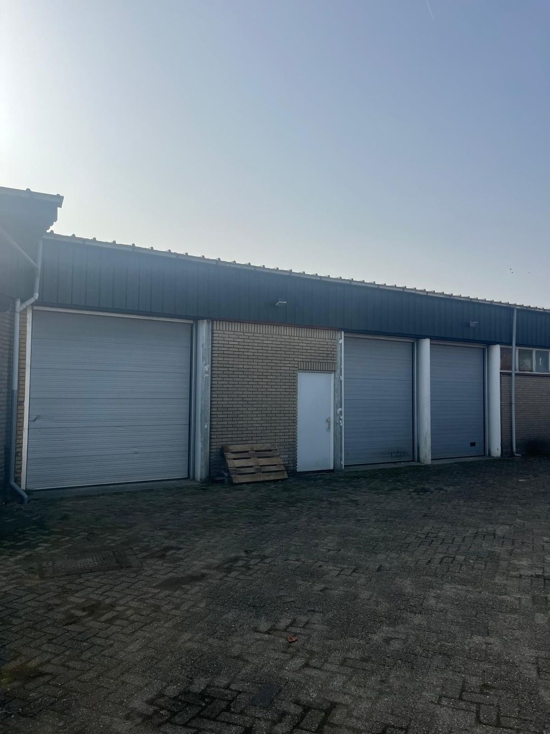Het object beschikt over een samengesteld dak en is toegankelijk via drie overheaddeuren en één separate loopdeur, wat zorgt voor een zeer praktische toegankelijkheid voor laden en lossen.