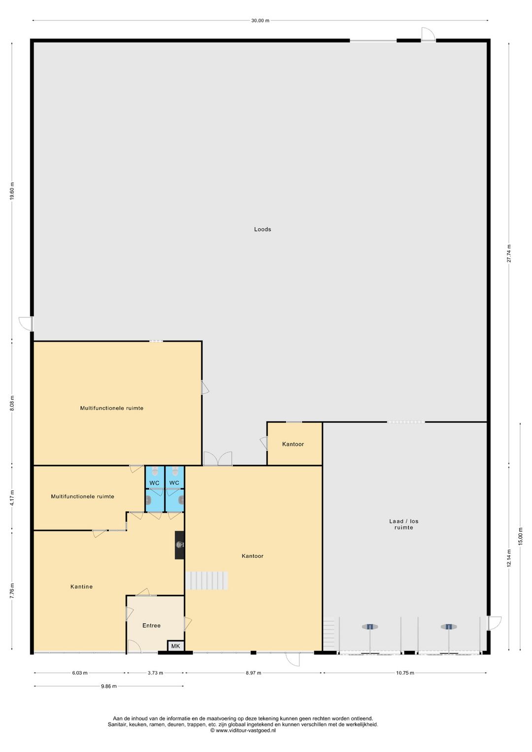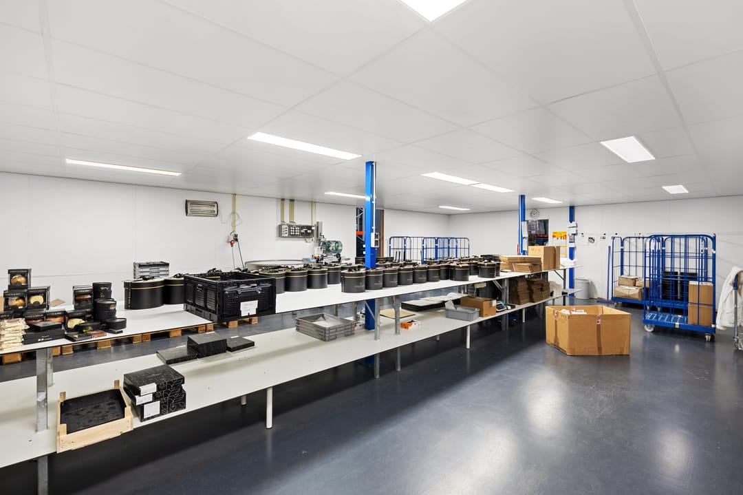 - Lichtstraten, loading docks, overheaddeuren, krachtstroom, betonvloer, heater, toilet, pantry, airconditioning en inbouwarmaturen