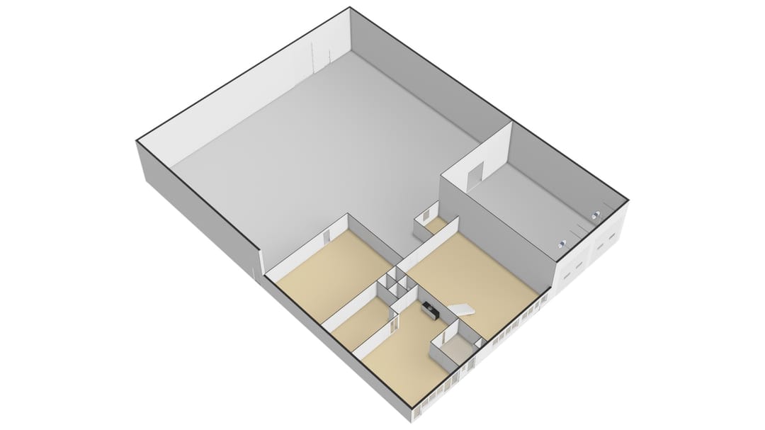 Het object omvat circa 225 m² kantoorruimte en circa 100 m² multifunctionele ruimte op de begane grond, alsmede een geconditioneerde bedrijfs-/opslagruimte van circa 860 m².