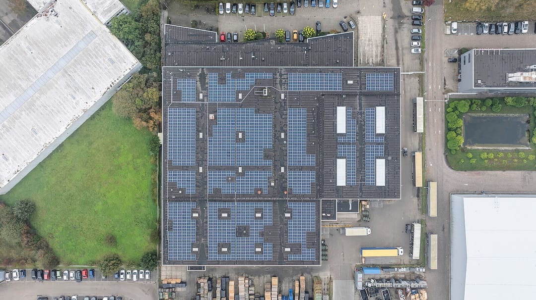 - Dak voorzien van 1.442 zonnepanelen. De geschatte jaaropbrengst bedraagt circa 490.000 kWh.