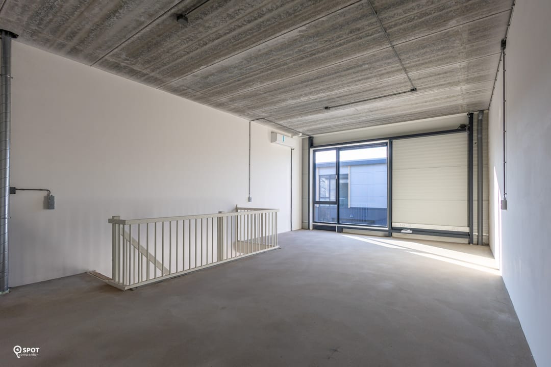De unit met een totale oppervlakte van circa 120 m2 beschikt over een bedrijfsruimte op de begane grond met een hoogte van circa 4,25 m1 en een kantoorruimte op de verdieping met een grote raampartij aan de voorzijde.